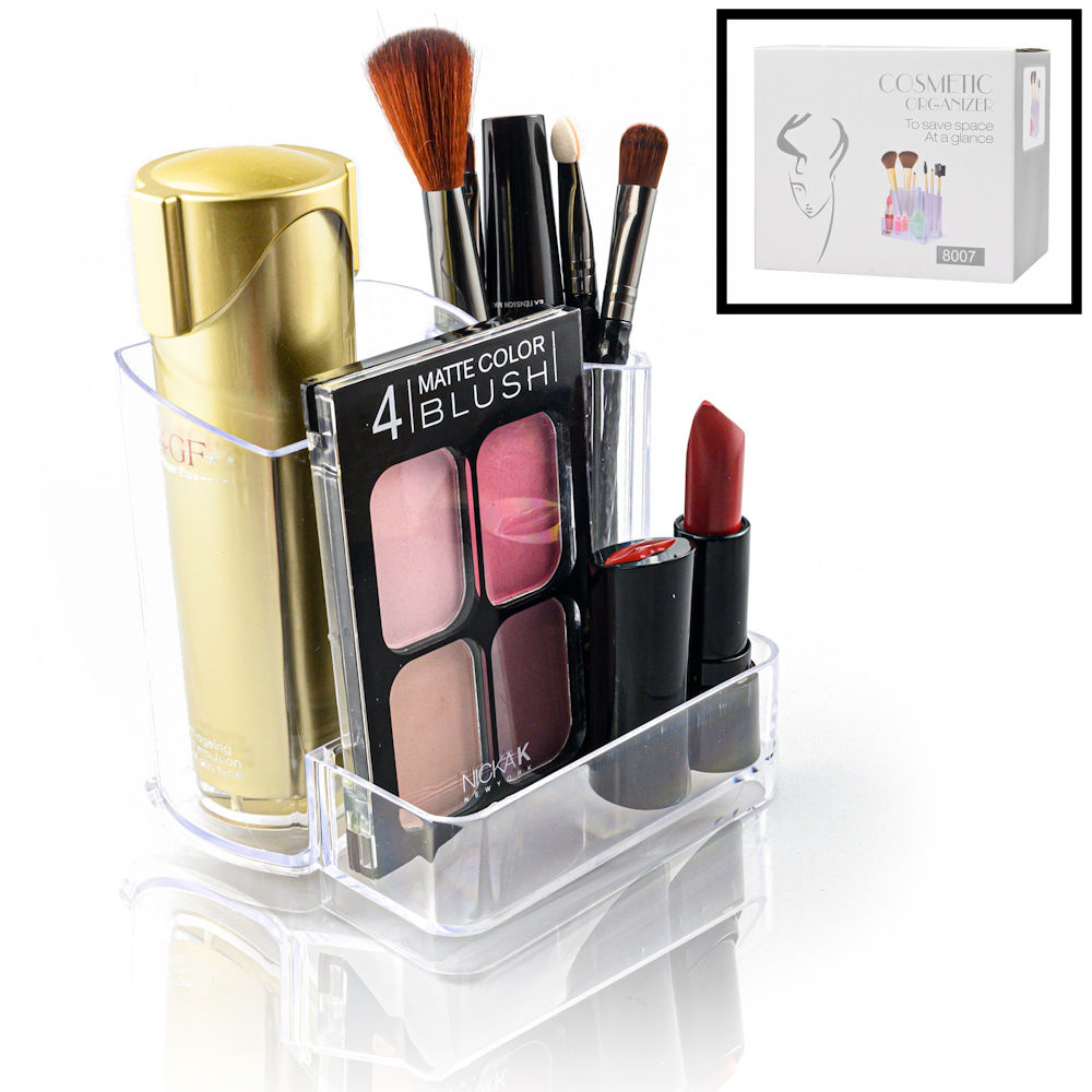 Een handige make up organizer die overal bij past. Deze Make-up organizer is ruim genoeg om je meest gebruikte cosmetica zoals oogschaduw, makeup kwasten, lippenstiften, parfum en veel meer in op te bergen. Ideaal dus voor in uw slaapkamer, badkamer of voor op uw kaptafel.