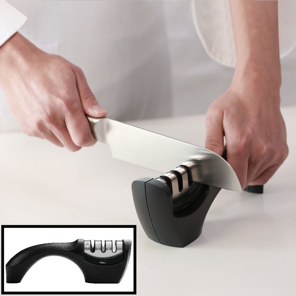 GEEN botte messen meer... In uw keuken is er niets meer frustrerend dan een stomp of bot keukenmes dat niet meer goed snijdt. Of het nu voor groenten, kruiden of vlees is. Een scherp keuken mes is de basis voor veilig en efficiënt koken. Bestel deze messenslijper vandaag nog, zodat u snel weer over scherpe messen in uw keuken beschikt.