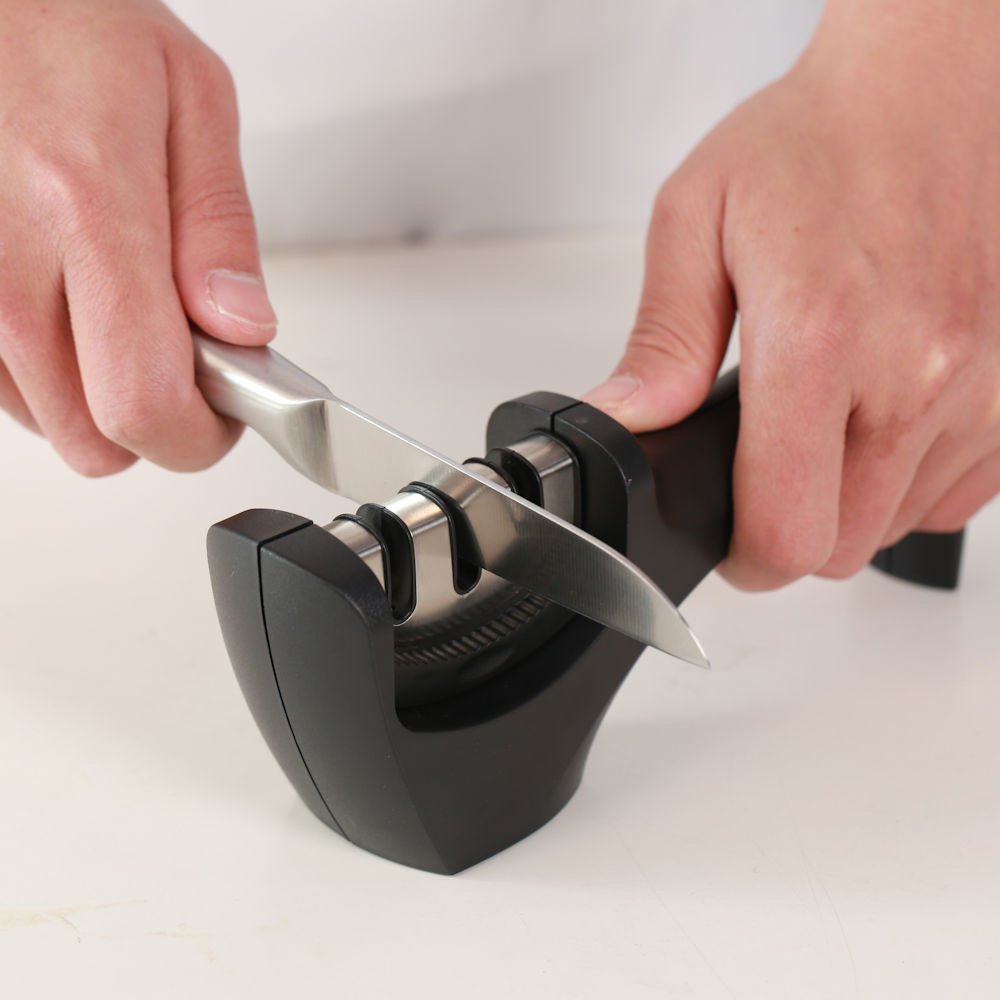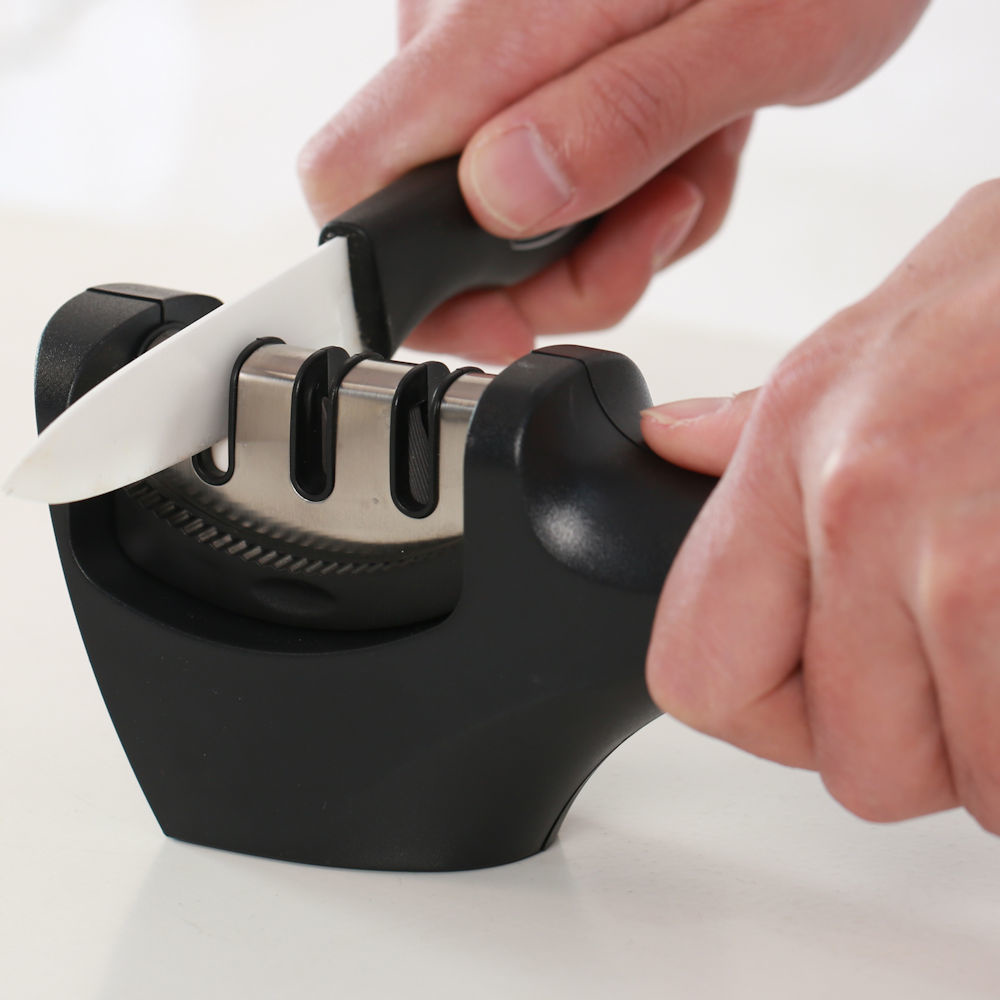 Deze messenslijper is voorzien van een handgreep, zodat u uw messen of schaar stabiel kunt slijpen. Door dit handige handvat is deze messenslijper zowel geschikt voor links als rechts handige gebruikers.