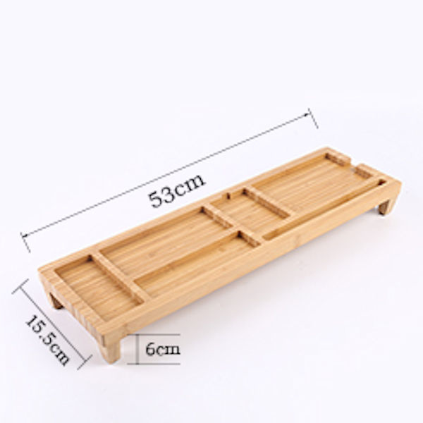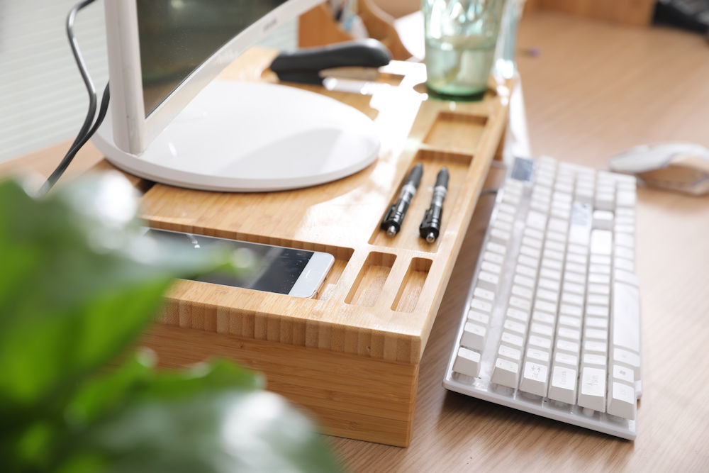▶ Naast een monitorstandaard is dit ook een bureau-organizer. Er zijn namelijk 7 uitsparingen in het bamboe aangebracht. Hierin zet je bijvoorbeeld je telefoon en een kop verse koffie. Ook is er ruimte voor pennen, paperclips en andere kleine kantoorartikelen.