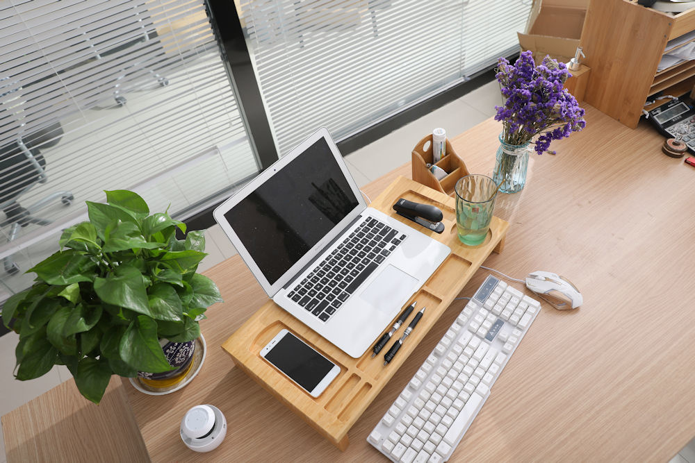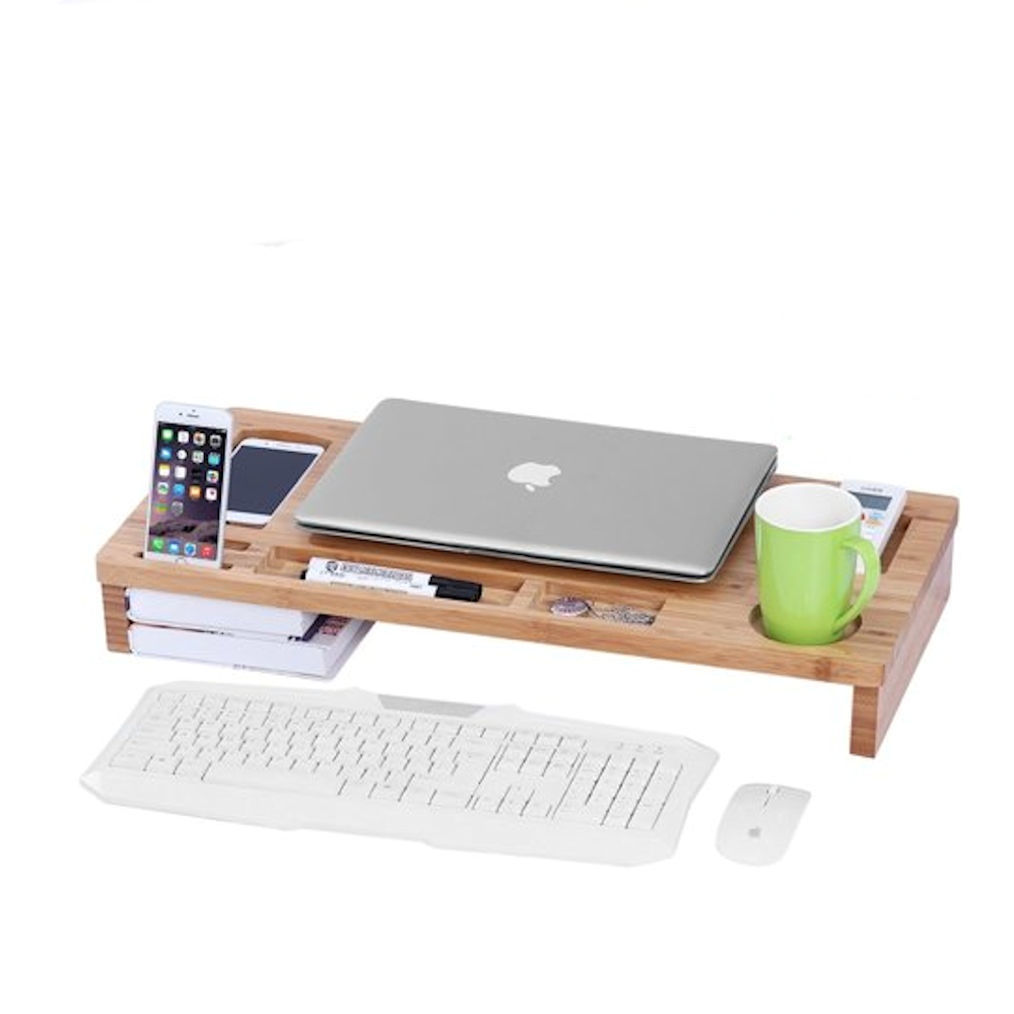 Luxe Monitor / Laptop beeldscherm verhoger en bureau organizer. Voor meer comfort en het voorkomen van nekklachten. Gemaakt van stevig bamboe hout en met een mooie, moderne en natuurlijke uitstraling.
