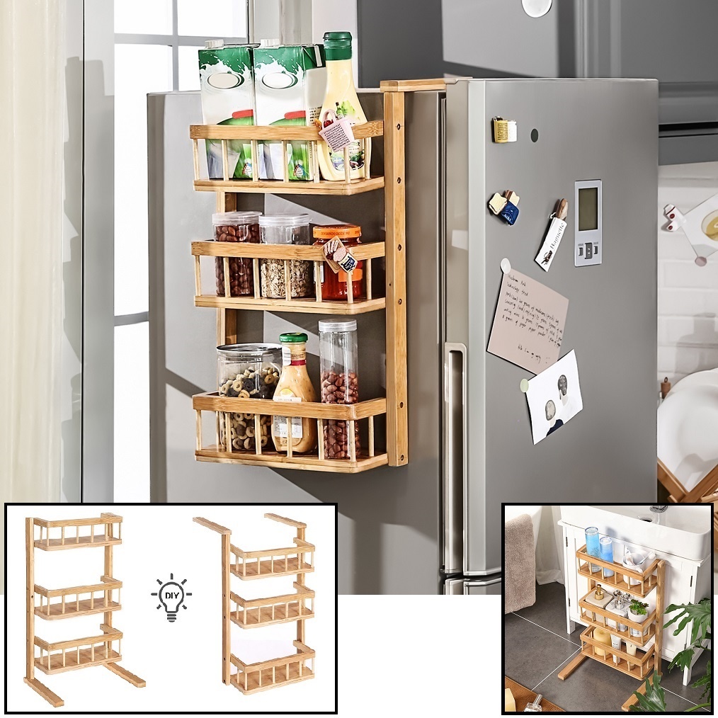 Decopatent Multifunctioneel opbergrek - Staand & hangend te gebruiken - Als keukenrek / badkamerrek - Hangend aan (koel)kast of staand op vloer - Decopatent®