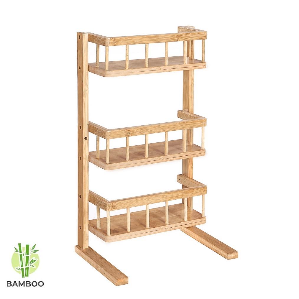 Uniek multifunctioneel opbergrek van bamboe hout. Staand & Hangend te gebruiken! Stevig, praktisch en mooi! Voor keuken en badkamer!