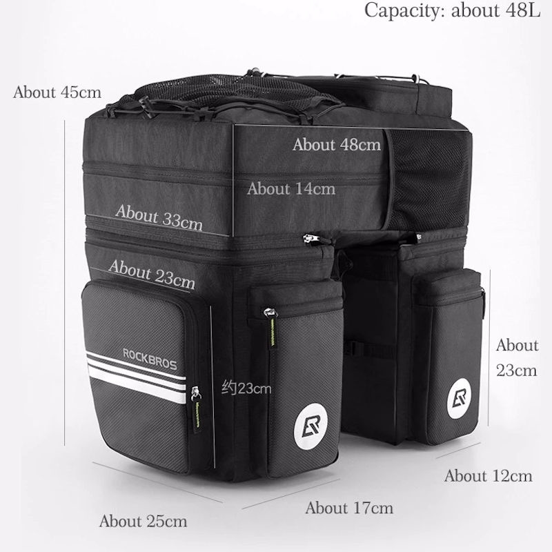 ✅ Super grote capaciteit: Deze bagagetassen hebben een totale capaciteit van 48 Liter, wat perfect is om al uw spullen mee te nmen op uw fiets. Je kunt fietsgereedschap, handschoenen, mobiele telefoons, kleding, schoenen etc. hier eenvoudig in kwijt. Tevens is de toptas te gebruiken als rugzak.