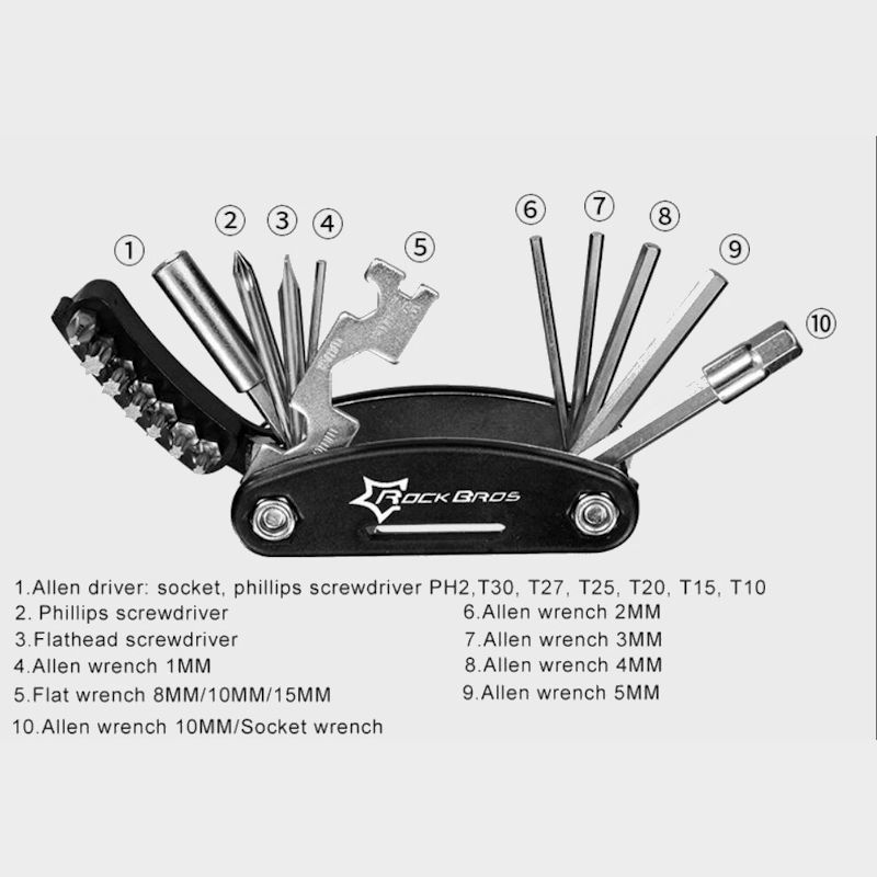 Met deze multifunctionele 16-Delige fiets reperatie tool heb je voortaan al je gereedschap bij de hand, en hij weegt maar 225 gram.