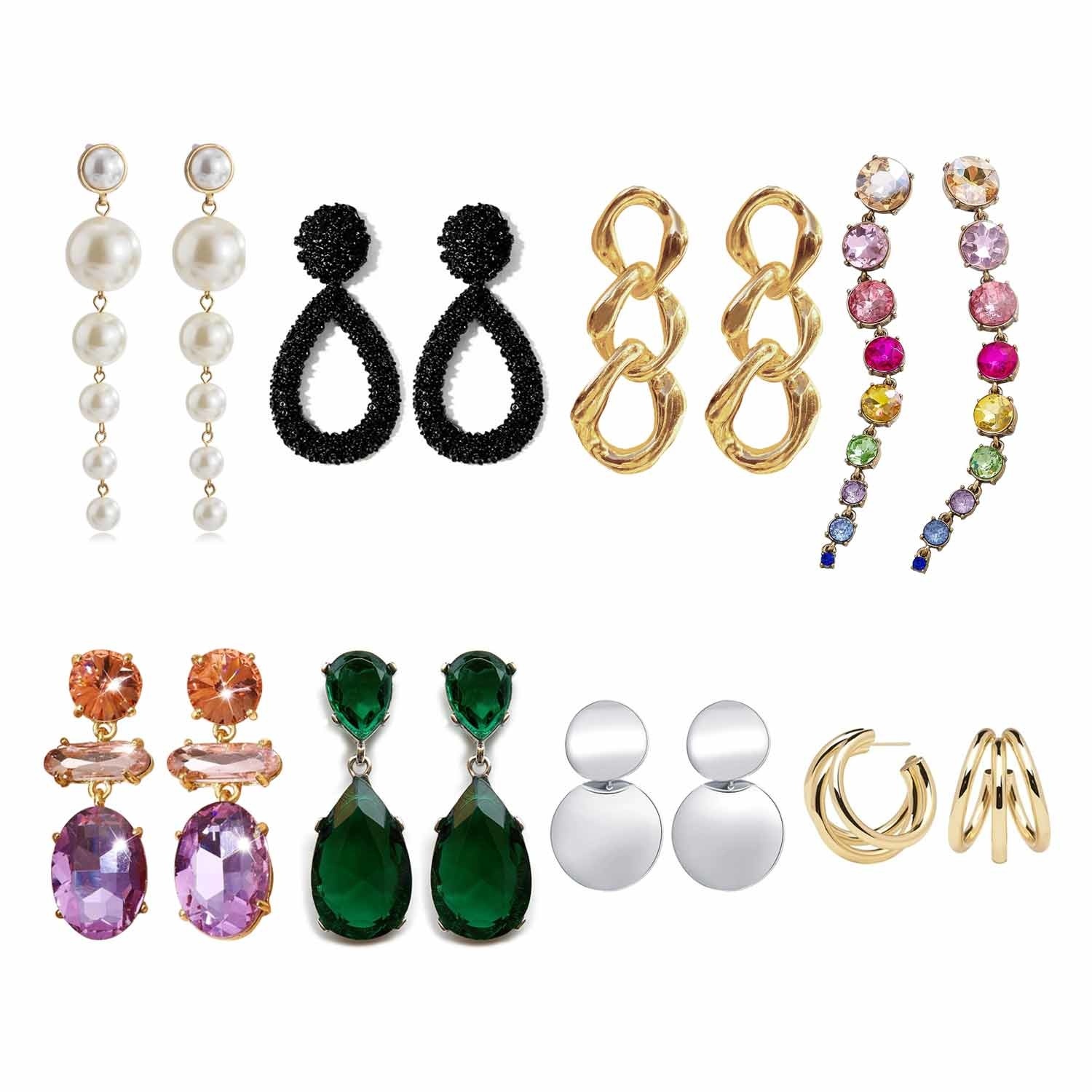 Grote set met 8 verschillende dames hangers oorbellen! Diverse ontwerpen en stenen, elegante sieraden. Inclusief satijnen opberg tasje. De leukste oorbellenset om altijd te kunnen matchen met jouw outfit en stijl! De meest uitgebreide en meest voordelige set op de markt!
