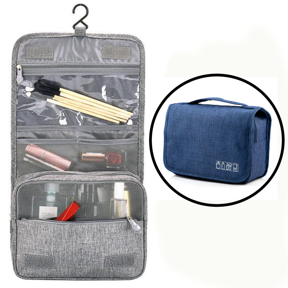 Decopatent Ophangbare Toilettas met Haak - Reis Toilet tas - Travel bag Organizer voor Vakantie / Kamperen & Reizen – Hangende Make up tas - Cosmetica Etui Tasje - Reistas Mannen en Vrouwen – Kleur BLAUW - Decopatent®