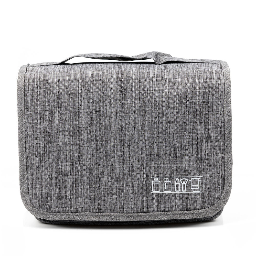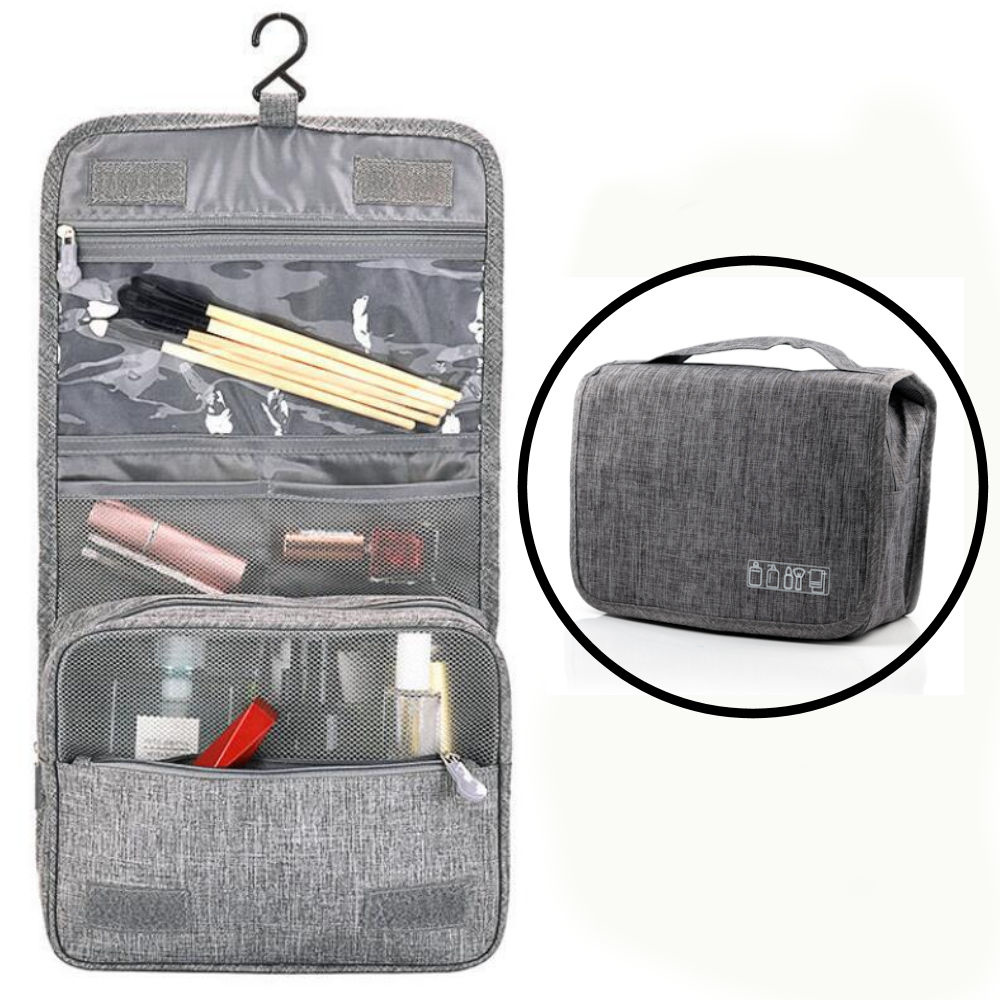 Decopatent Ophangbare Toilettas met Haak - Reis Toilet tas - Travel bag Organizer voor Vakantie / Kamperen & Reizen – Hangende Make up tas - Cosmetica Etui Tasje - Reistas Mannen en Vrouwen – Kleur GRIJS - Decopatent®