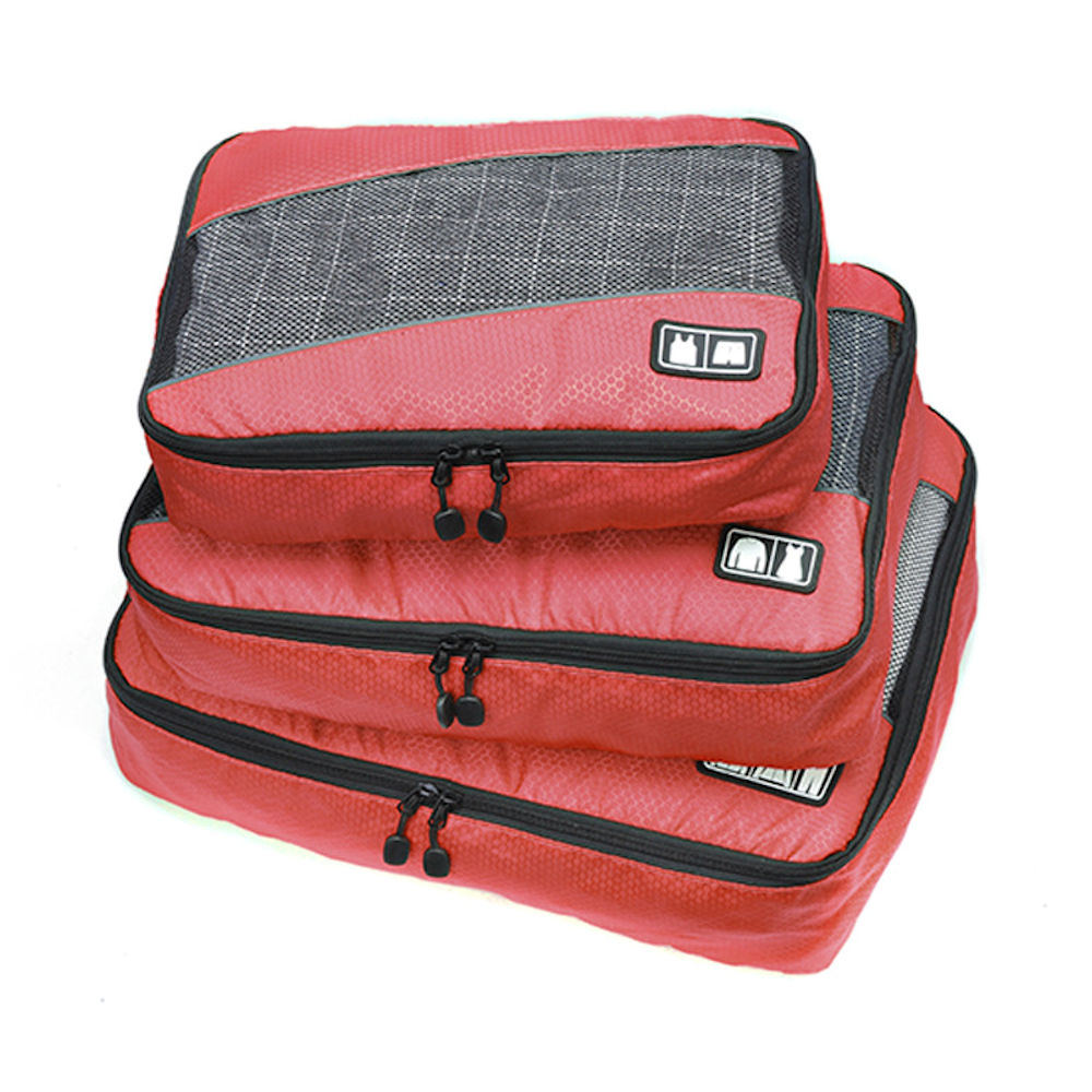 Decopatent Packing Cubes 3 Delige reis Set - Koffer organizer - Handbagage inpak Organizers voor Kleding - Ondergoed - Schoenen – Compression Cubes opberg tassen - kofferorganiser - Kleur ROOD - Decopatent®