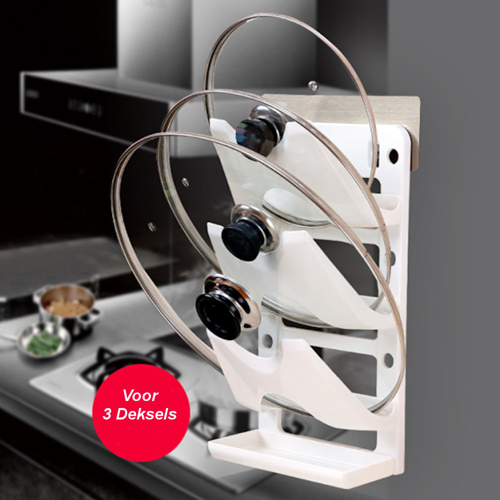 ✅ Pannendeksels Houder / Opbergrek, voor 3 pannen deksels.