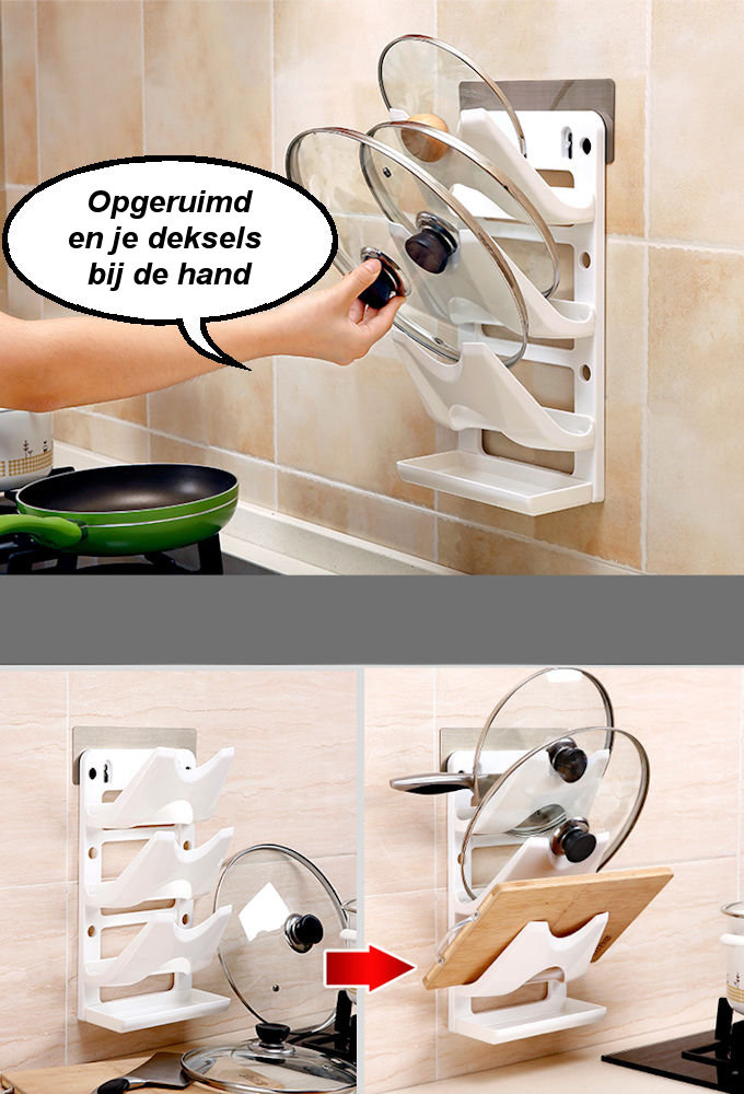 Wat zou dit makkelijk zijn als u uw pannendeksels altijd binnen handbereik heeft, op de plek waar u ze nodig heeft ? Aan de muur boven uw aanrecht.