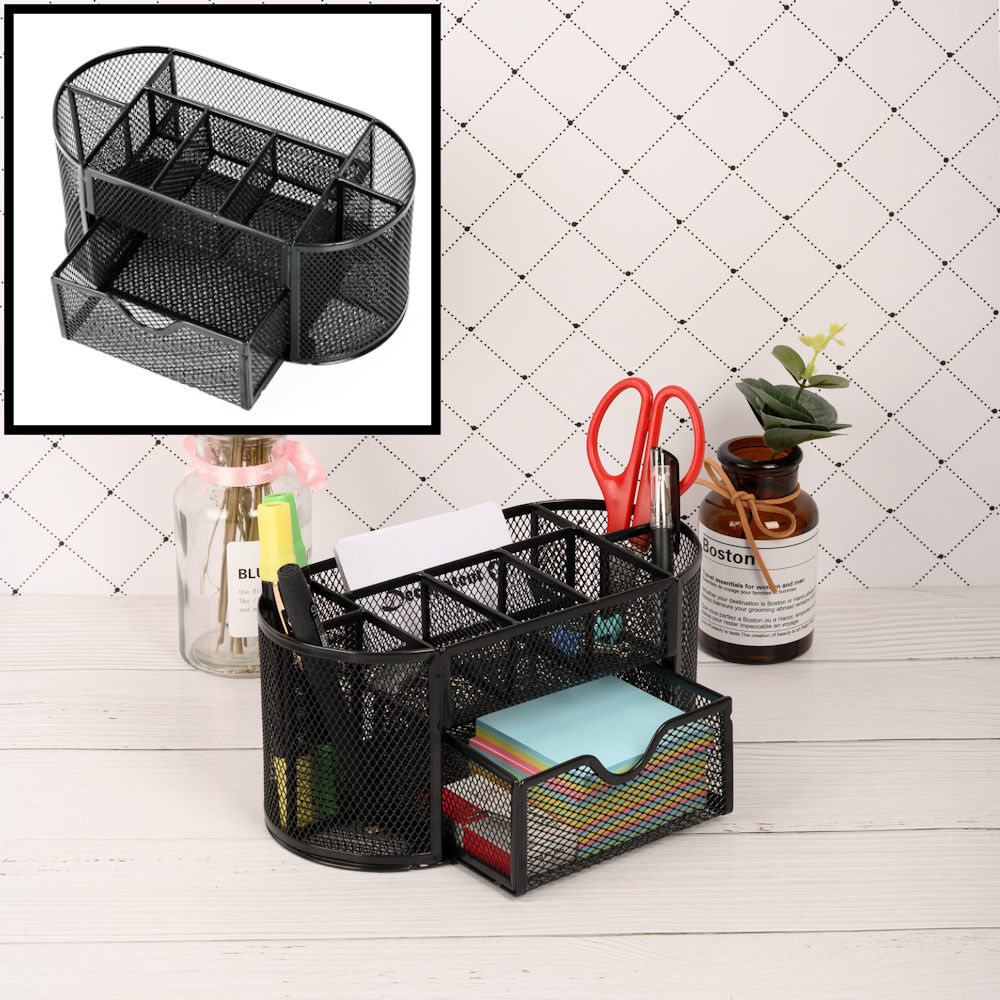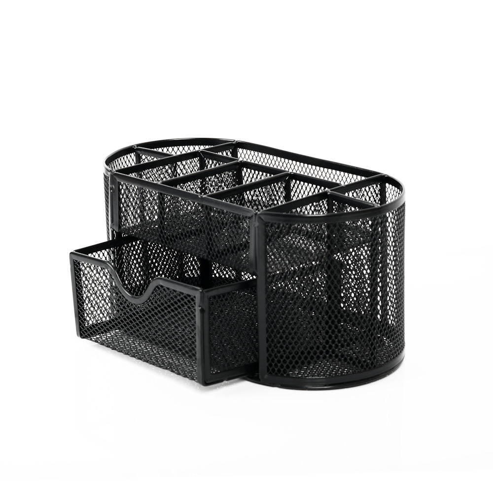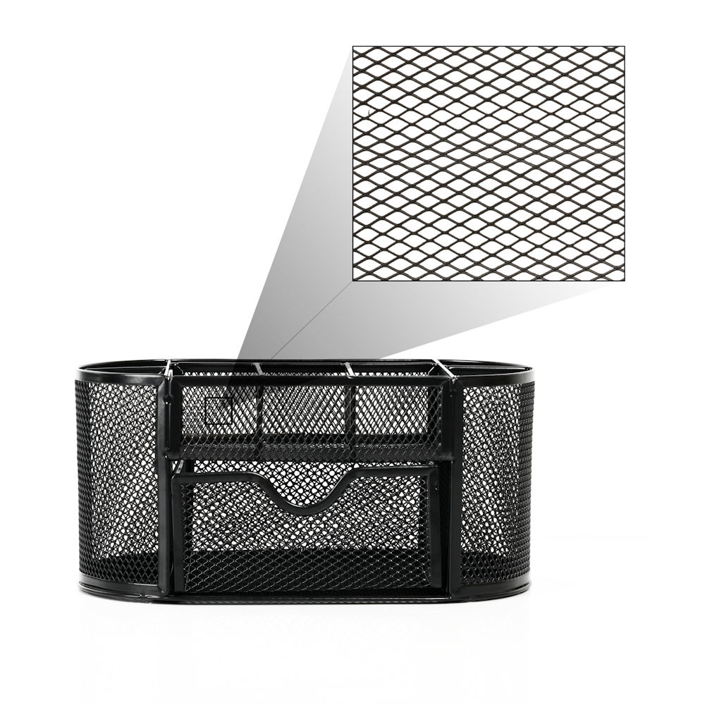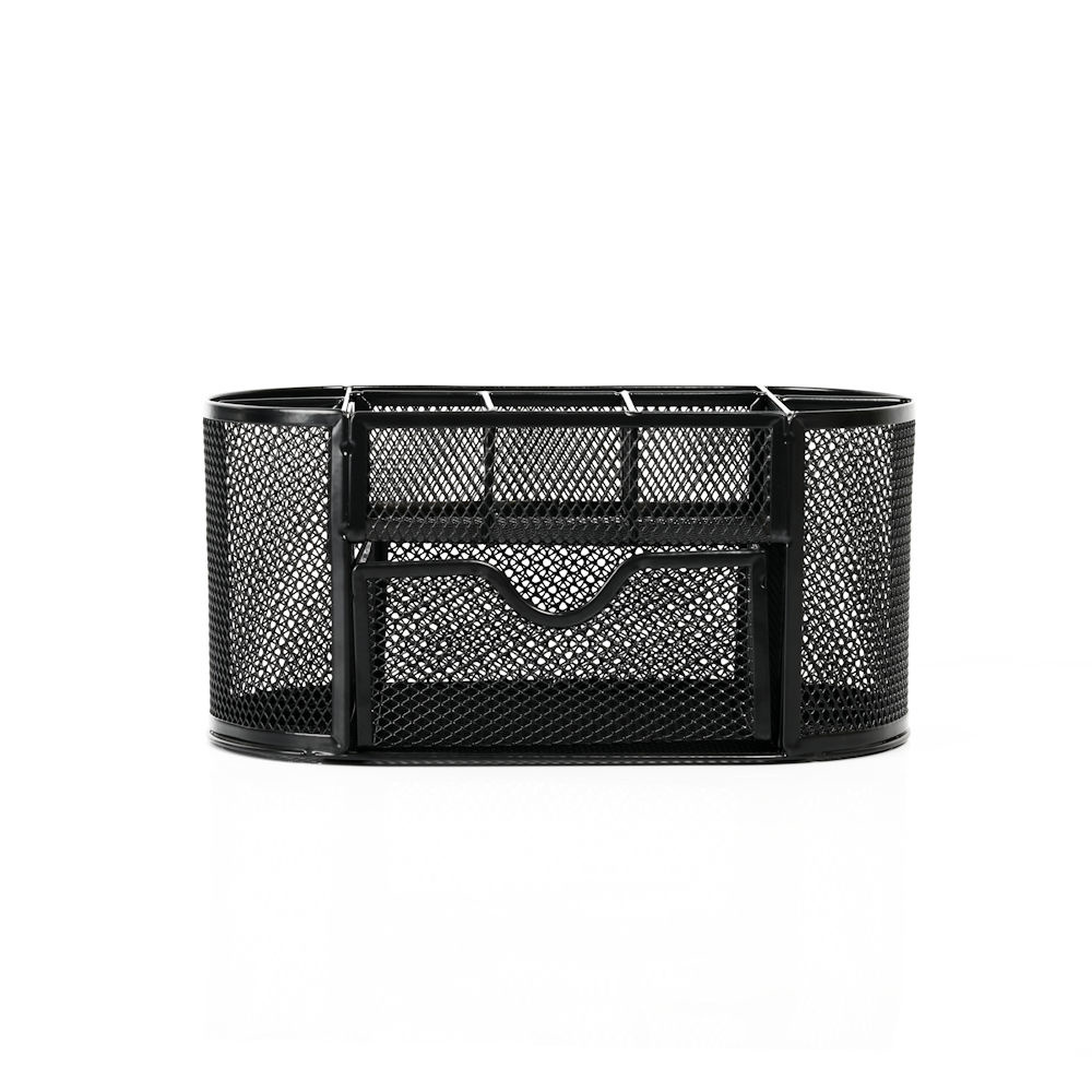 Decopatent Pennenbak met 8 vakken en 1 schuiflade voor pennen, potloden, notitieblok / post it en paperclips etc - Mesh bureau organizer - pennenbakje van metaal / gaas - pennenhouder - bureau organizer Kleur: Zwart – Decopatent®