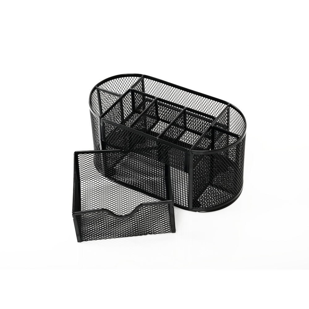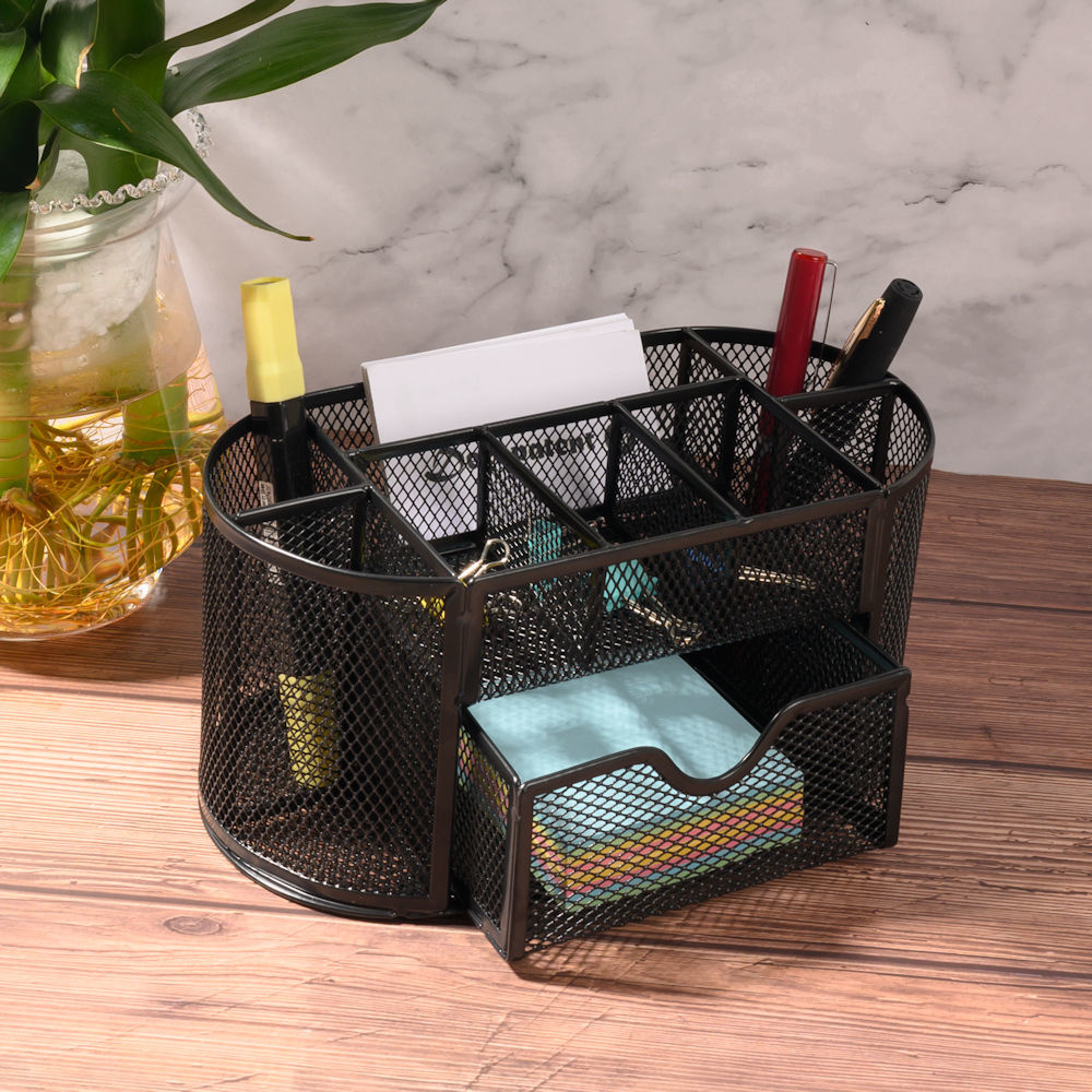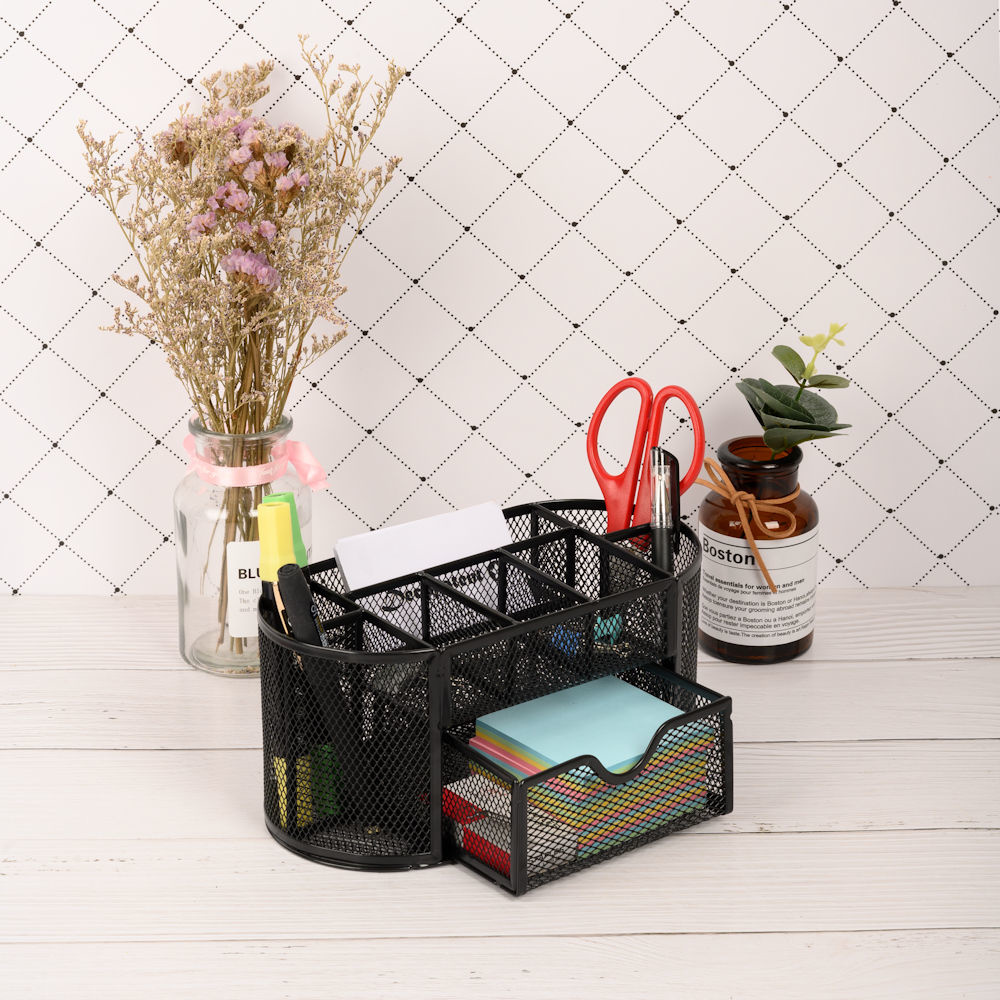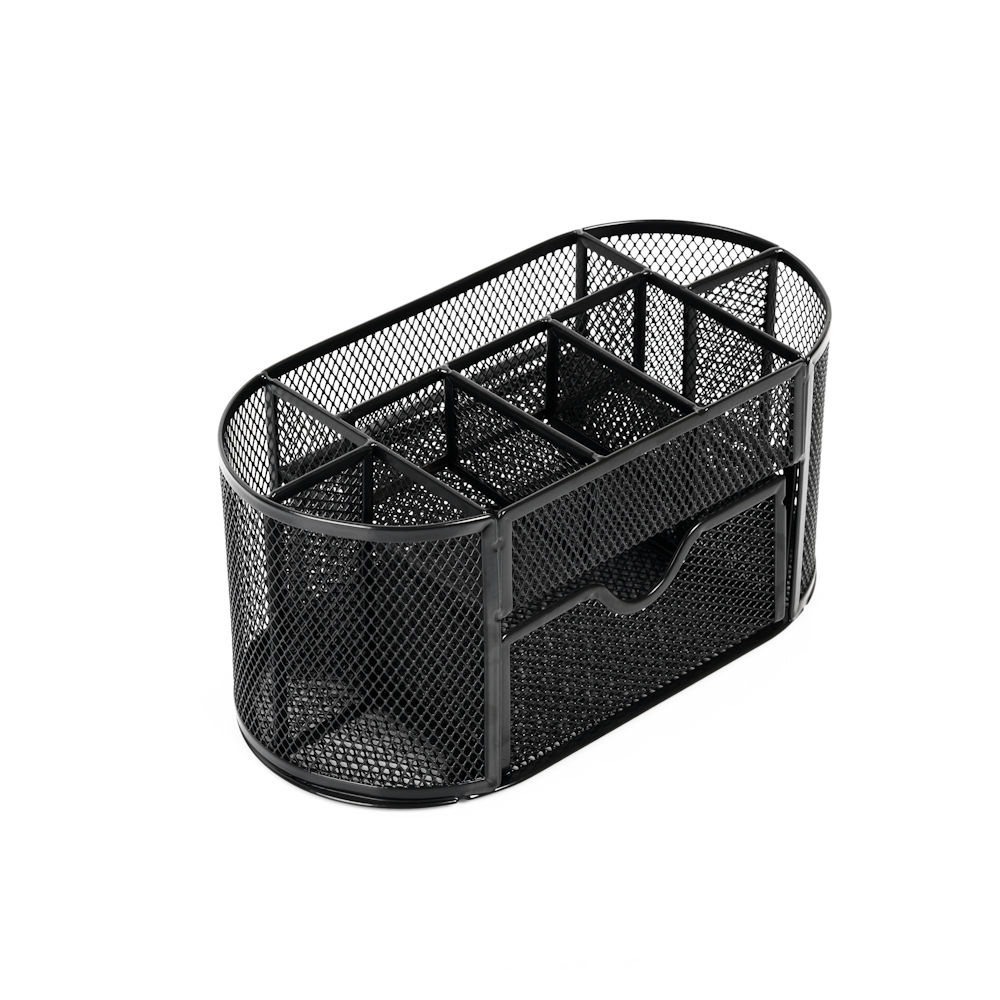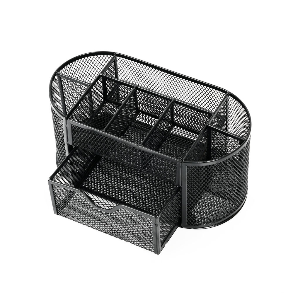 Decopatent Pennenbak met 8 vakken en 1 schuiflade voor pennen, potloden, notitieblok / post it en paperclips etc - Mesh bureau organizer - pennenbakje van metaal / gaas - pennenhouder - bureau organizer Kleur: Zwart – Decopatent®