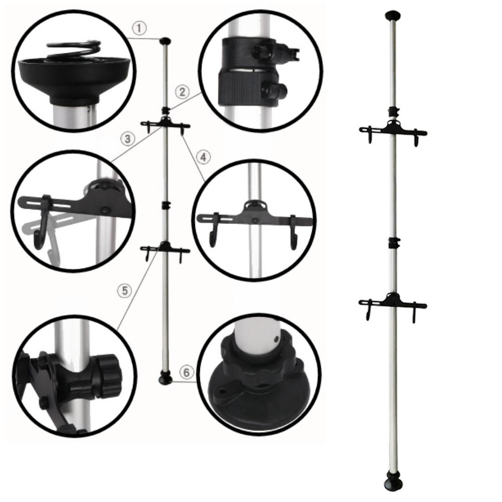 ✅ Plafond Fiets ophangsysteem voor 2 Fietsen, voorzien van een telescoopstang die u eenvoudig tussen de vloer en het plafond klem zet. Om zo uw 2 fietsen ruimtebesparend op te hangen.