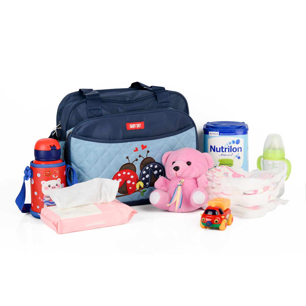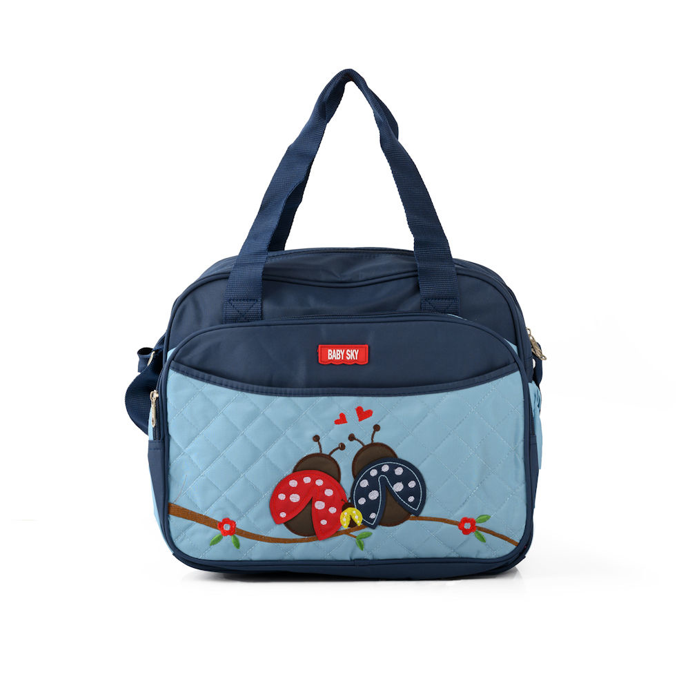 Decopatent Praktische Luiertas / Baby Verzorgingstas INCLUSIEF Verschoningsmatje en Flessenhouder - Lieveheersbeestjes Design - Schoudertas / Rugzak Luiertas met lange hengsels en veel vakken - Grote opberg Capaciteit - Luiertassen Jongens - BLAUW - Decopatent®