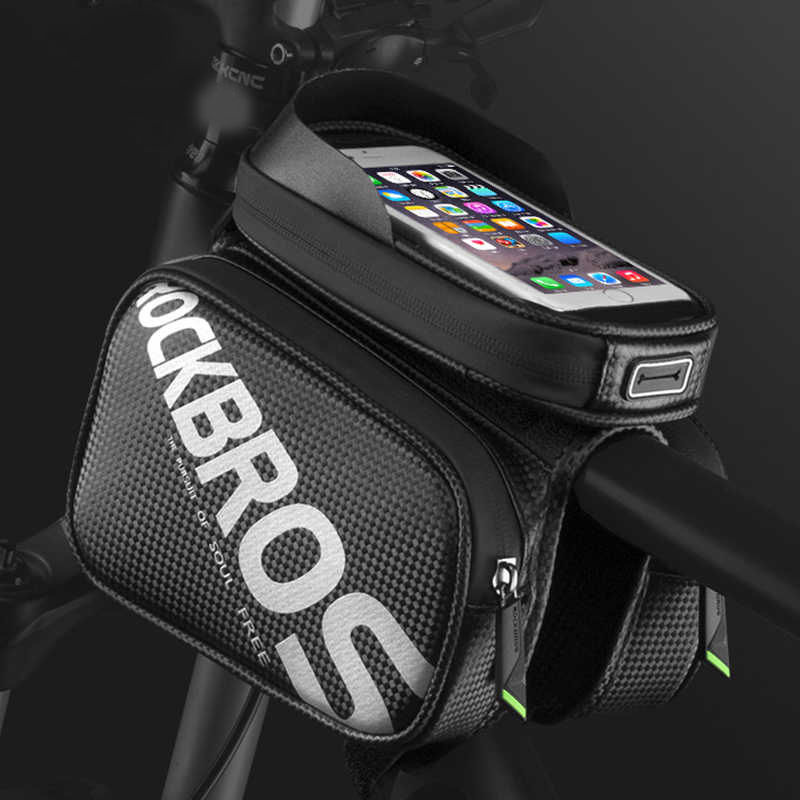 Ben je gek op fietsen ? Gun jezelf dan deze handige Professionele Waterbestendige Fiets frametas voorzien van touchscreen telefoonhouder voor 5.8 inch telefoons.
