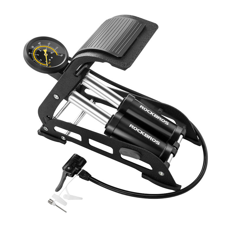 Met deze Luxe Pro voetpomp voorzien van dubbele cilinders kunt u uw autobanden, luchtbedden, wielen, voetballen etc. oppompen tot maximaal 10 bar. Deze voetpomp is voorzien van een dubbele cilinder met een grote manometer.