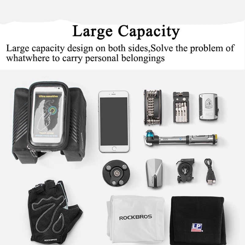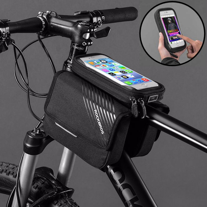 Ben je gek op fietsen ? Gun jezelf dan deze handige Professionele Waterbestendige Fiets frametas voorzien van touchscreen telefoonhouder voor 6 inch telefoons.