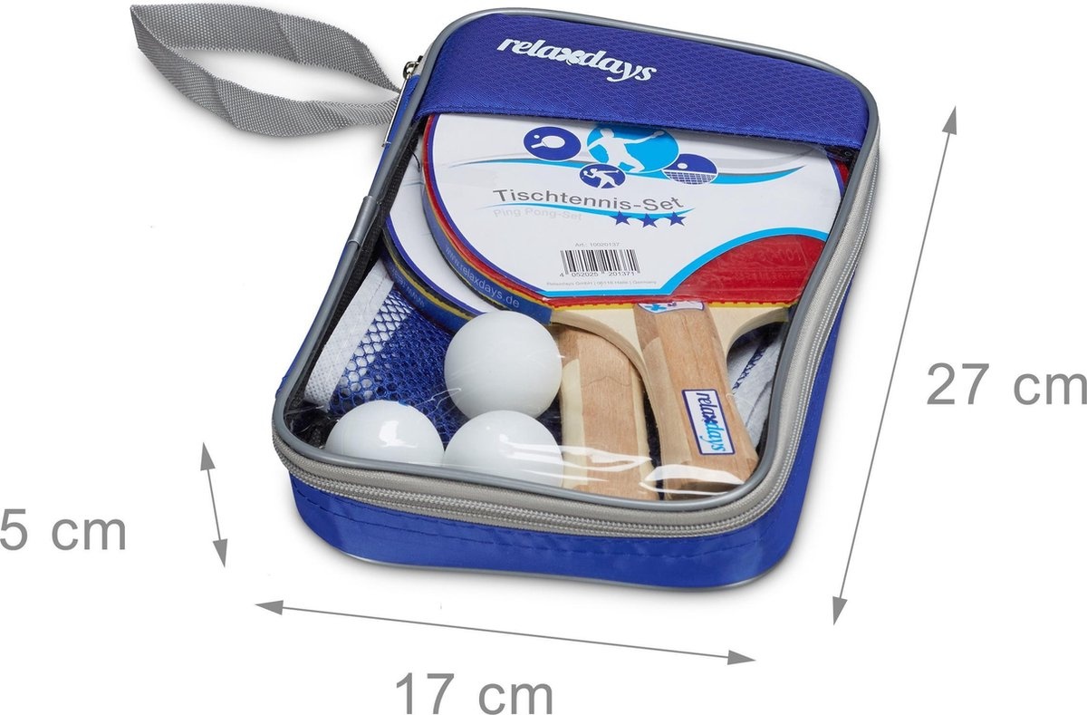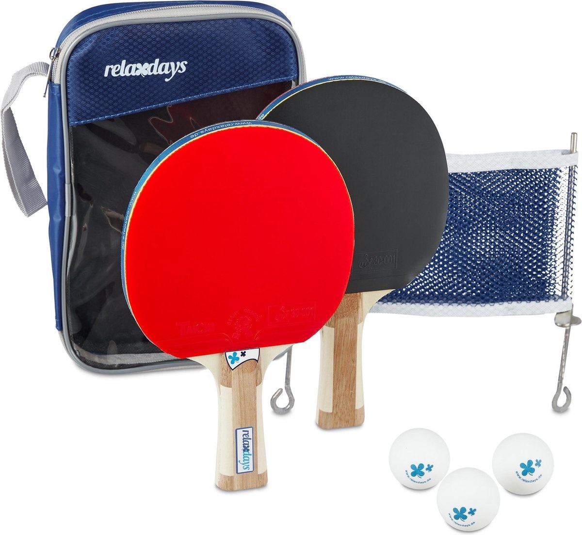 Relaxdays Relaxdays tafeltennisbatjes set - 27x17x5 cm - 2 batjes - met net - 3 ballen - 3 sterren - blauw