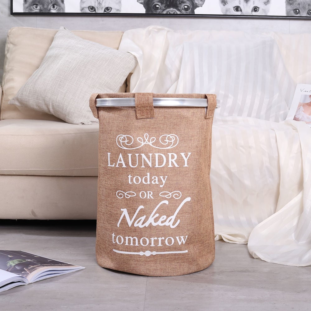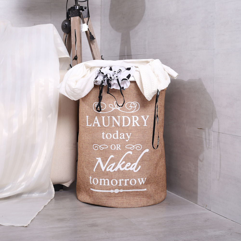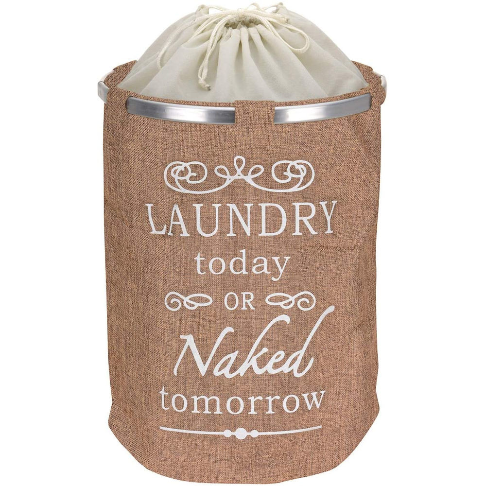✅ Ronde Wasmand met een prachtige Tekst: "Laundry today or Naked tomorrow " voor al uw vieze was. Inhoud 50 Liter.