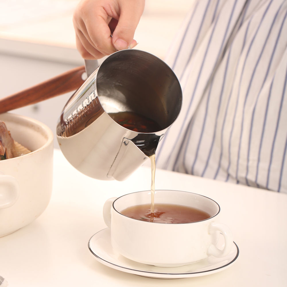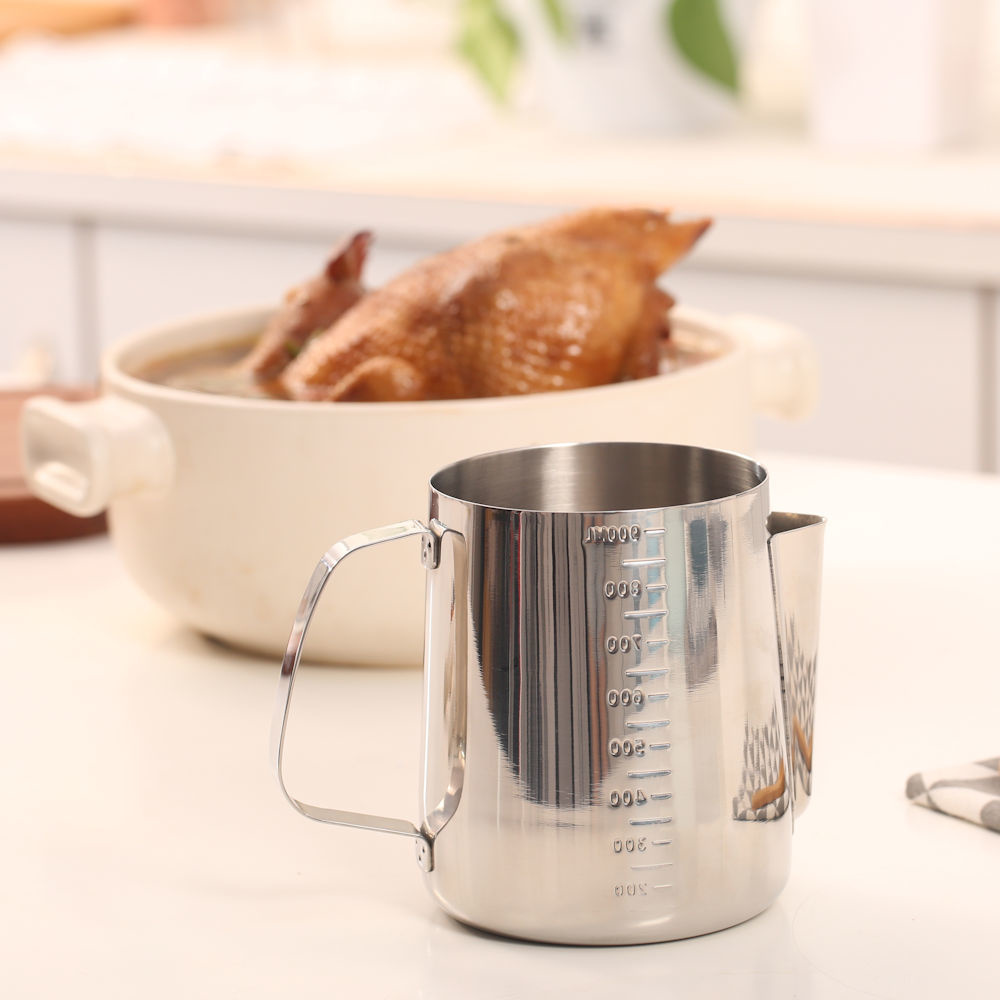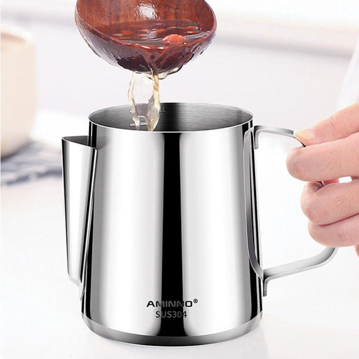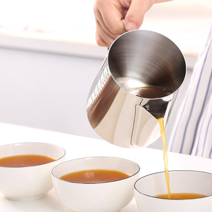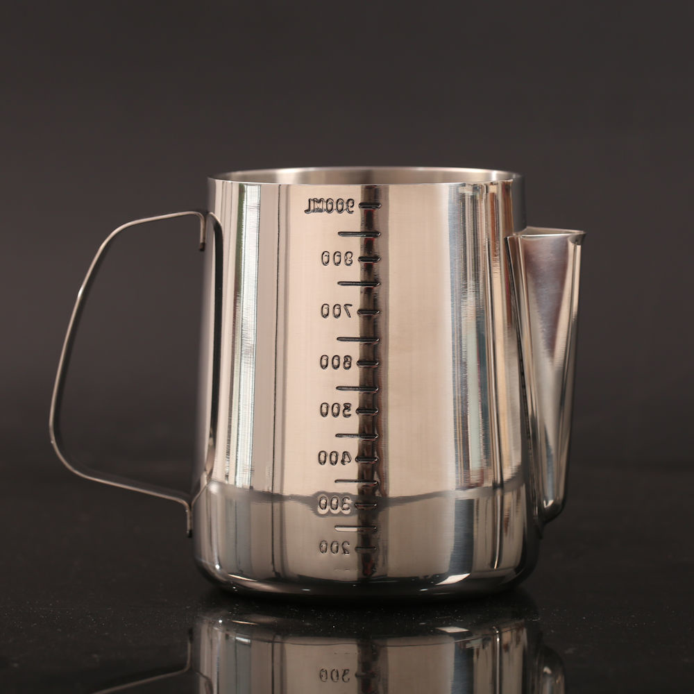 Deze maat beker kan worden gebruikt voor verschillende doeleinden: als melk op schuimende kan, koffie kan, theekan, maatbeker, om gesmolten chocolade in te maken, voor jus of saus etc.
