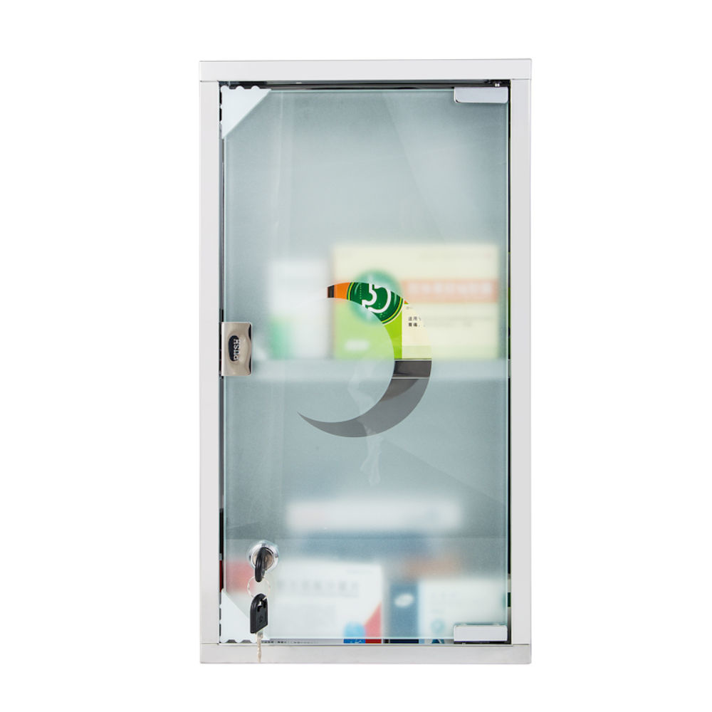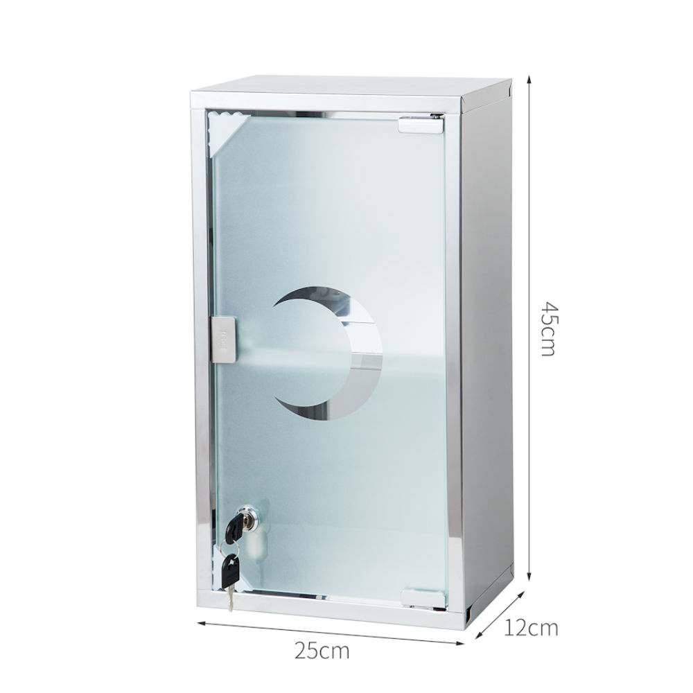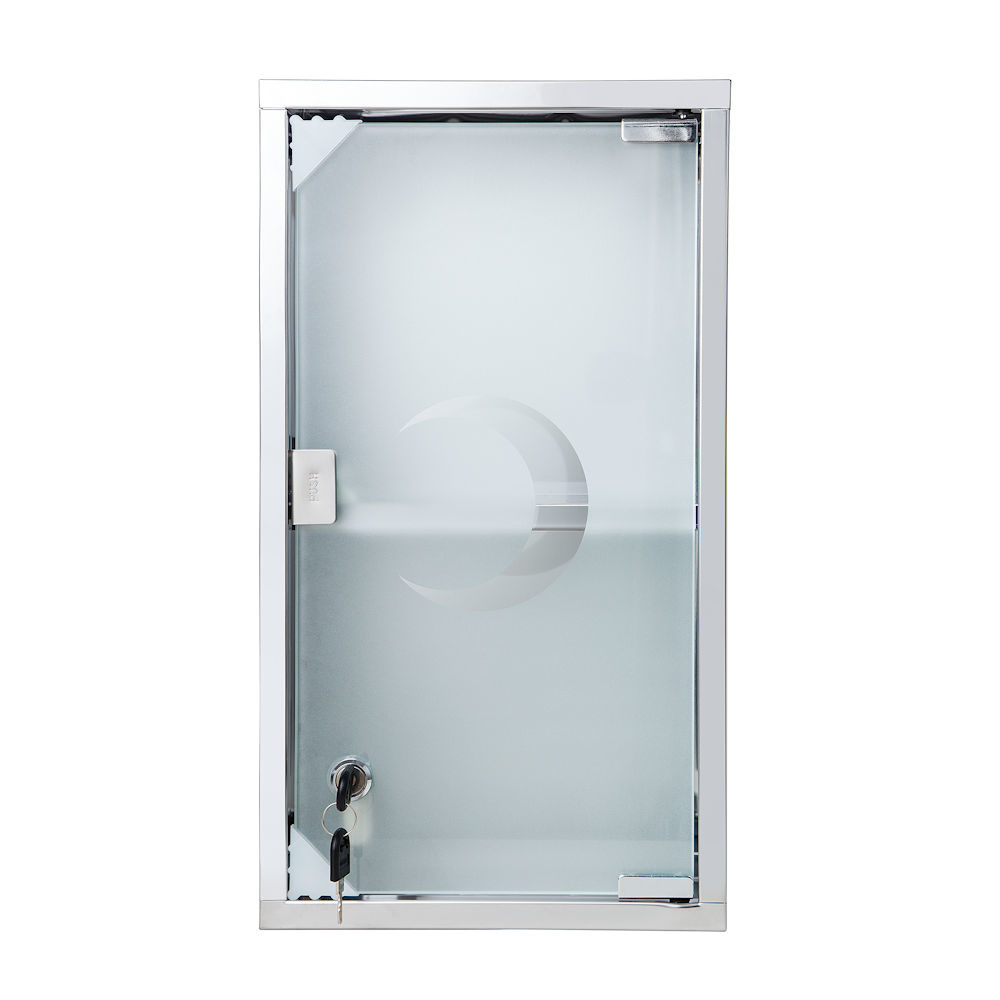 ✅ RVS hangende Medicijnkastje met Slot & Magnetische deur. Met deze medicijnkast zorgt u ervoor dat al uw medicijnen, pillen,etc. overzichtelijk en veilig opgeborgen zijn. En dus niet voor kinderen toegankelijk zijn. De medicijnkast is van (Rvs) roestvrij edelstaal en heeft 2 leg planken. De deur is van melkglas met een halve maan motief van helder glas.