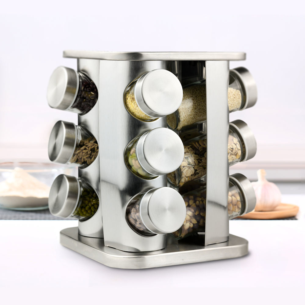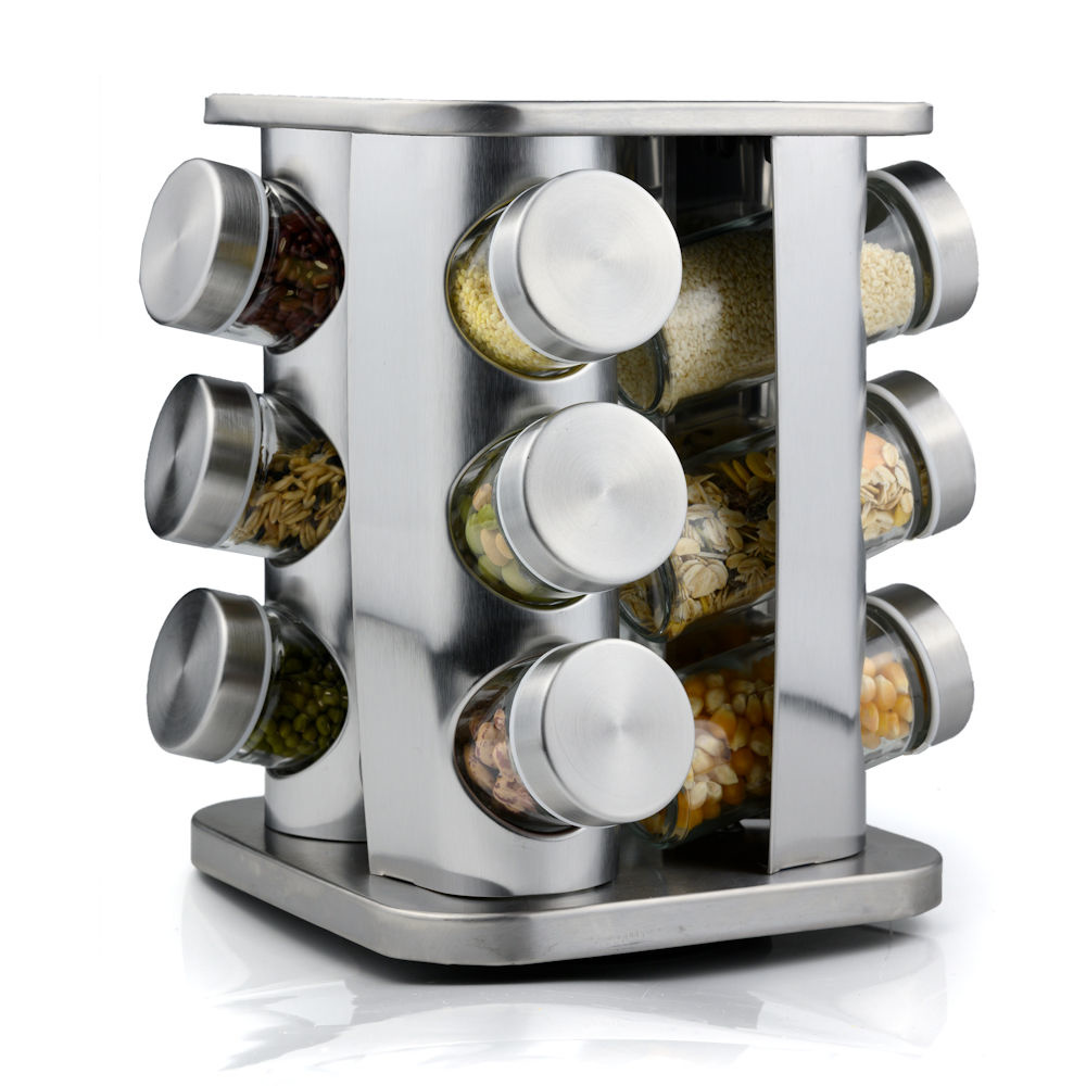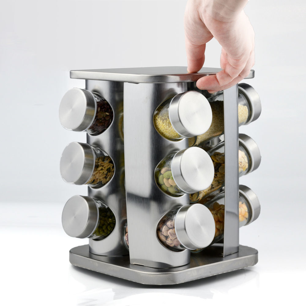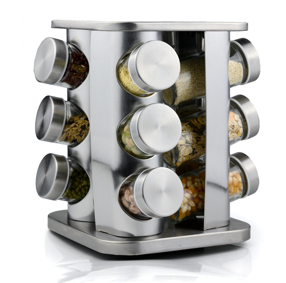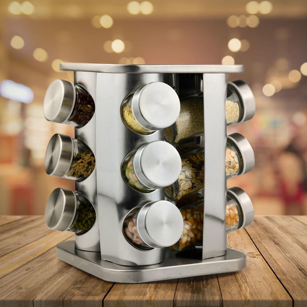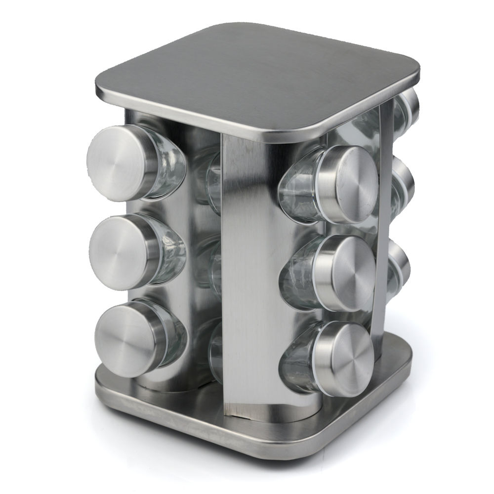 Dit rvs 360 graden draaibare Kruiden carrousel met 12 kruiden potjes heeft een tijdloze uitstraling, en past daarom in elke keuken. Deze luxe keukenaccessoire mag u eigenlijk niet missen in uw keuken.