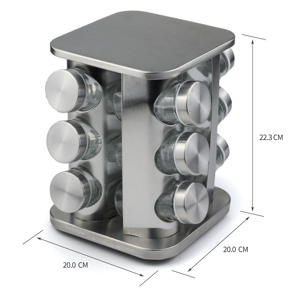 Decopatent Rvs Vierkante Kruiden Carrousel voor 12 Kruiden potjes - Kruidencarrousel draaibaar - Specerijenrek - Kruidenrek voor 12 kruidenpotjes - Kruidenmolen - Kruidenrek - Decopatent®