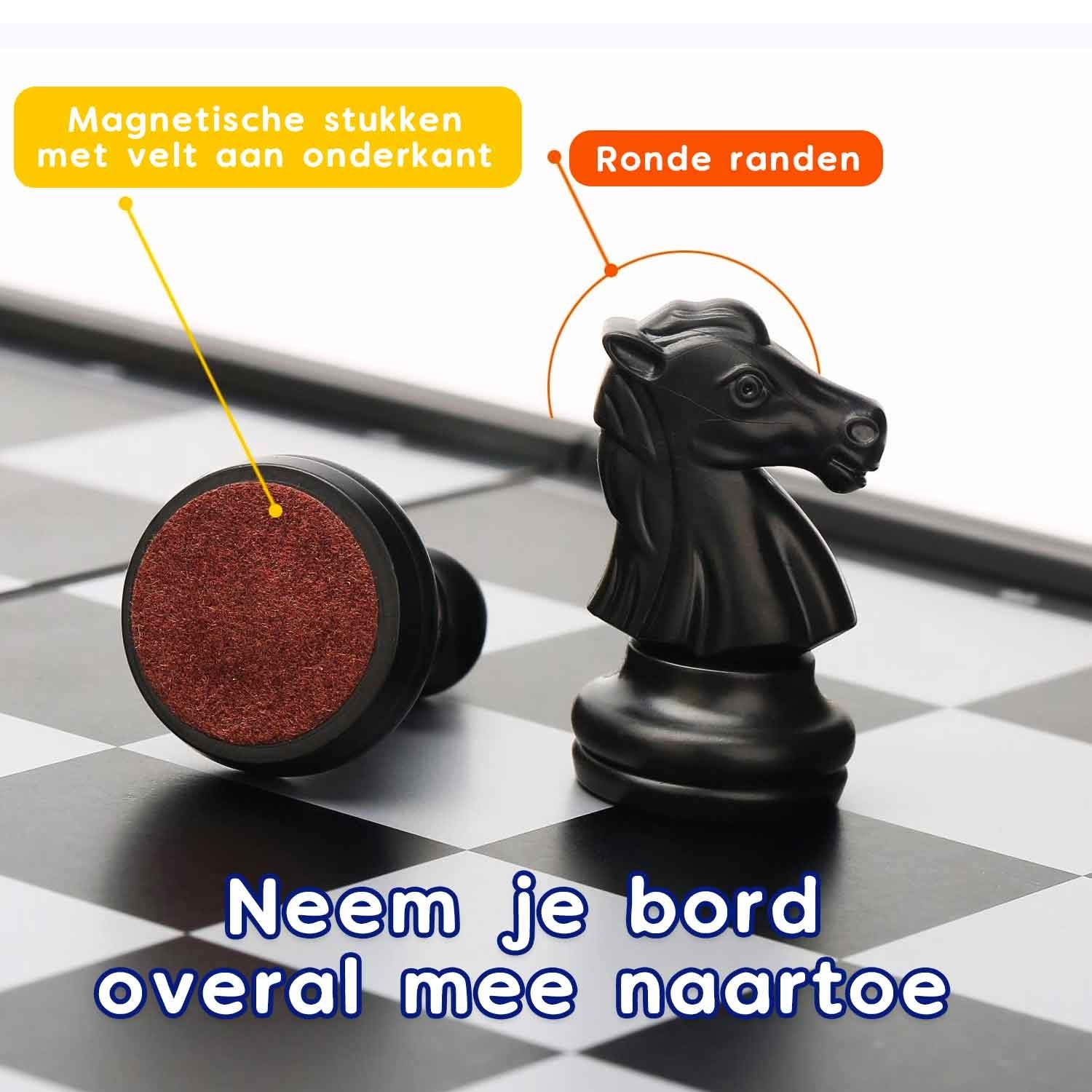 Allerion Allerion 3-in-1 Schaakbord Set - Schaken, Dammen, Backgammon - Schaakbord - Reis Spel - 25cm x 25cm