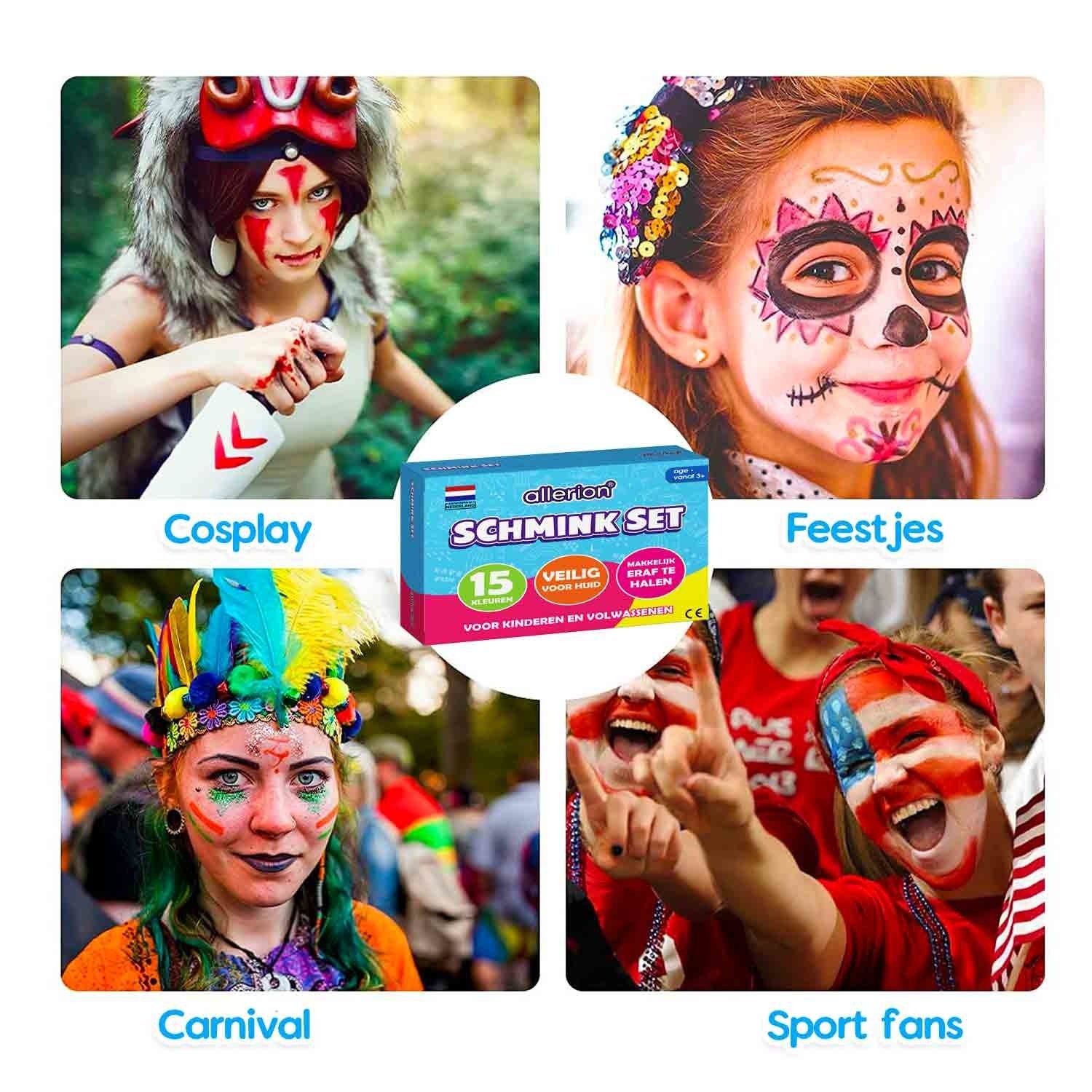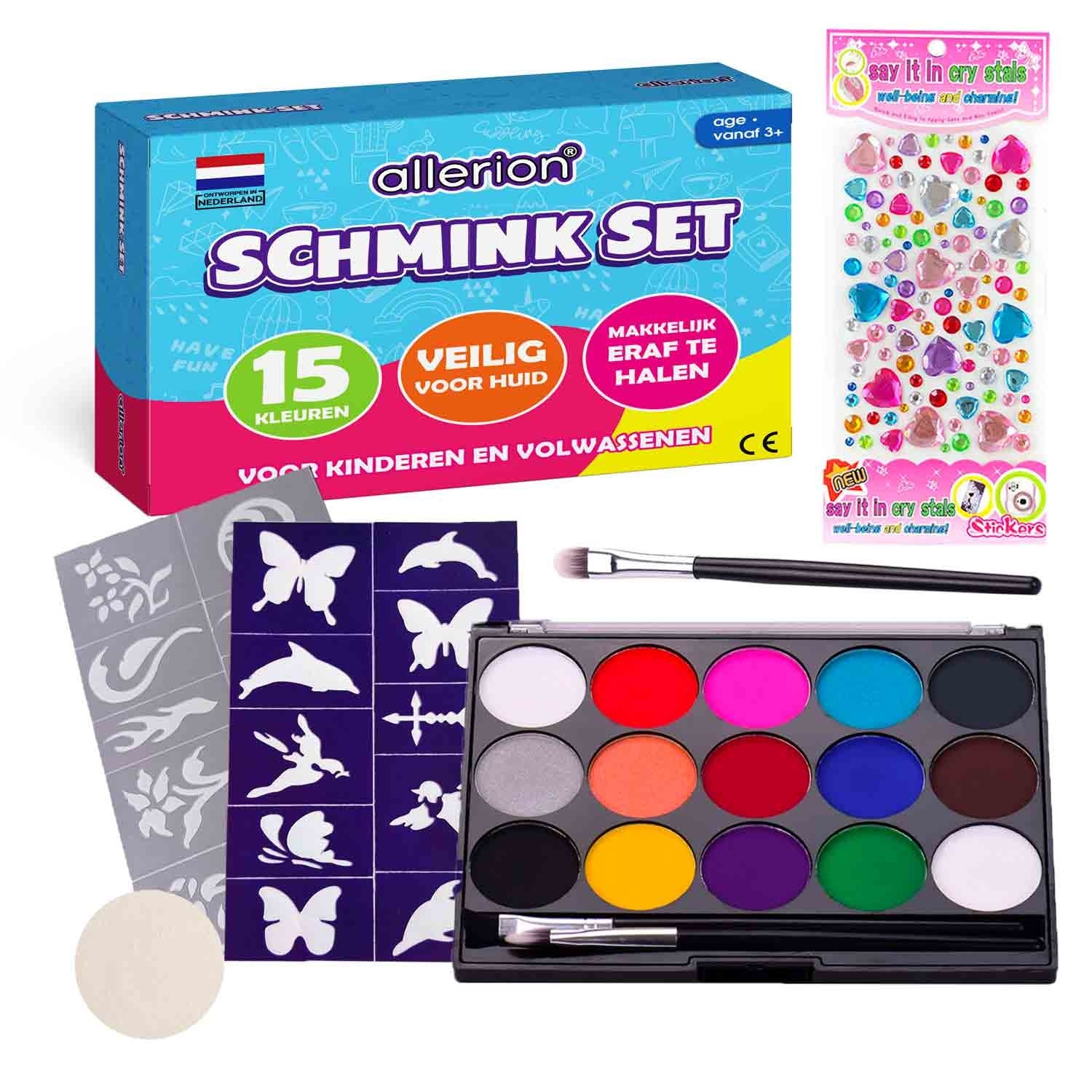 Allerion Allerion Schmink Set Medium - Halloween en Carnaval - Voor Kinderen - Op Waterbasis - Met Sjabloon en Accessoires