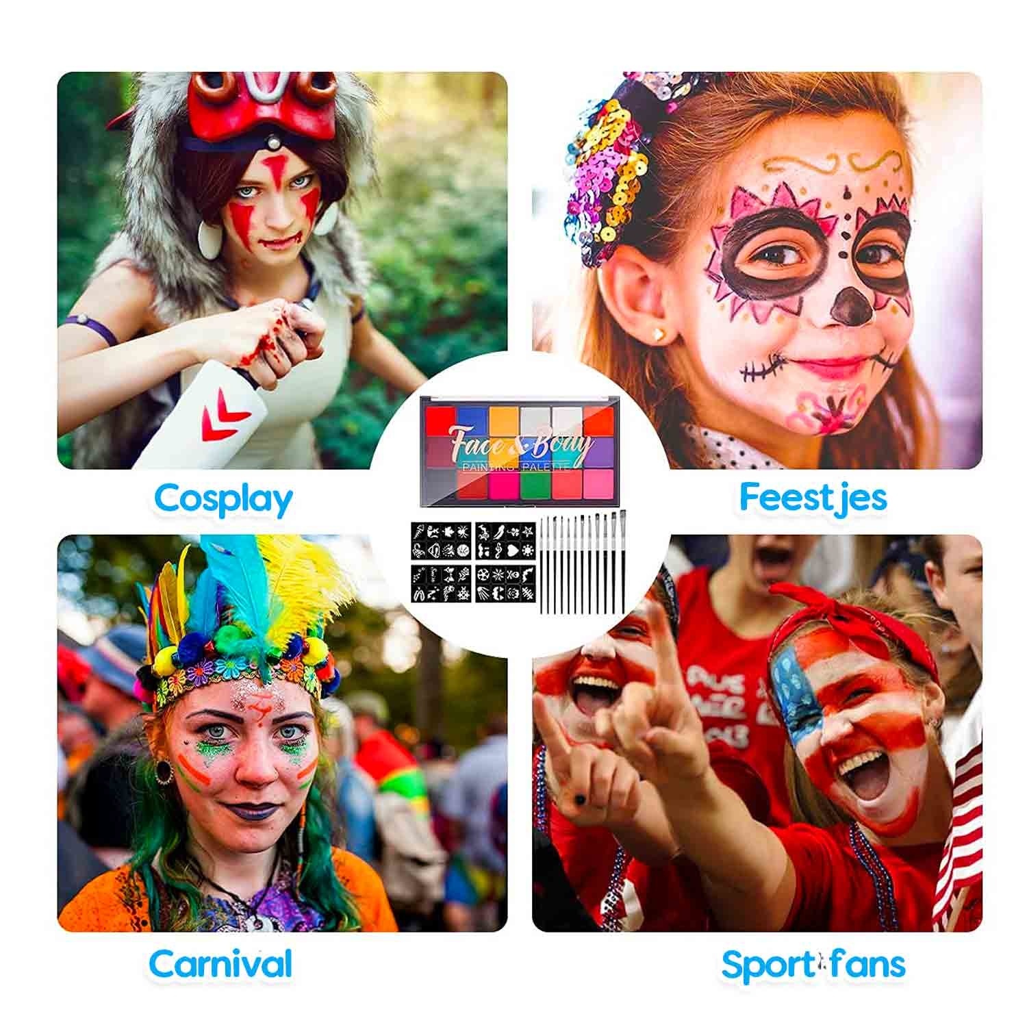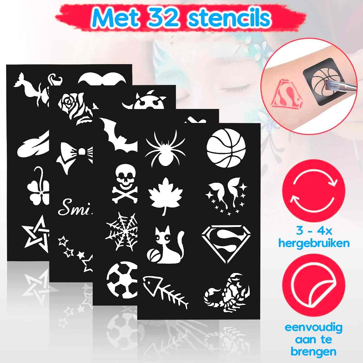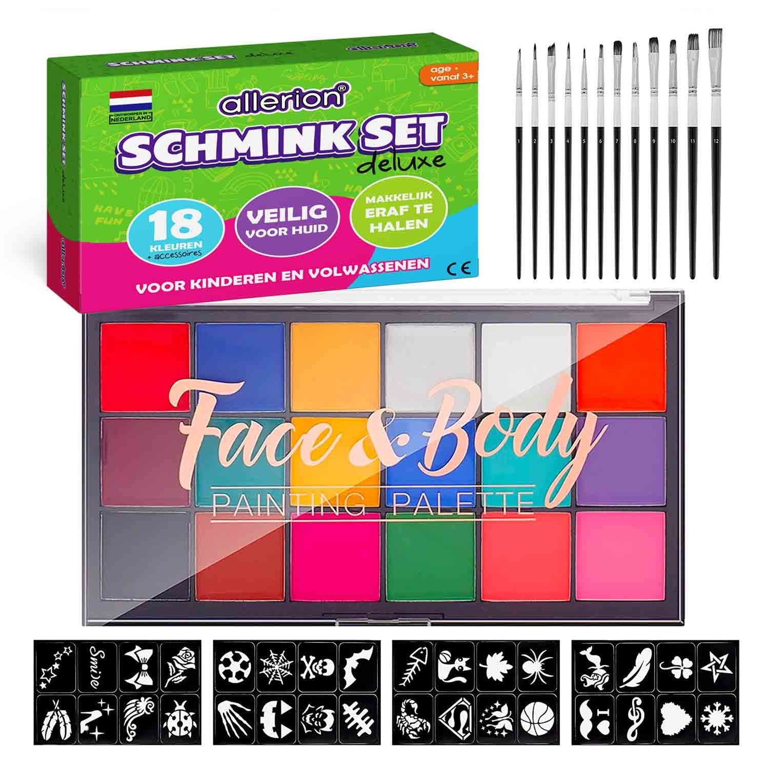 Allerion Allerion Schmink Set Large - Halloween en Carnaval - Voor Kinderen - Met Sjabloon en Accessoires - Op Oliebasis