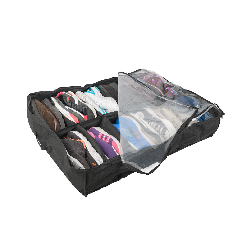 Decopatent Schoenen organizer opberg tas voor 12 Paar Schoenen - Schoenen opberg systeem - Schoenen opbergen onder bed of kast - Opbergbox - Schoenenopberger - Opberglade schoenen opbergsysteem - Schoenenzak met rits - Kleur: ZWART - Decopatent®