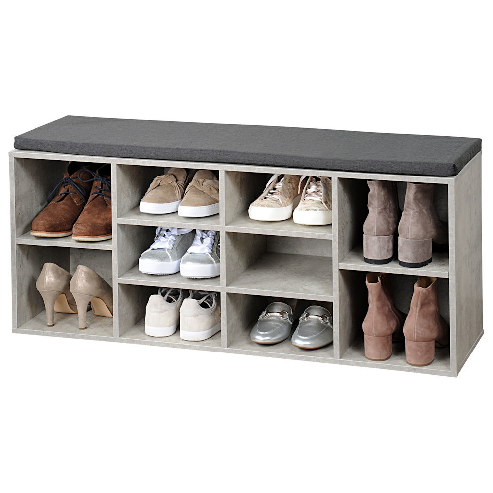 Kesper Schoenenbank - 10 paar schoenen met Zitkussen & Opbergvakken - Open Schoenenkast - FSC® hout - Afm 103.5 x 29.5 x 48 Cm - Grijs