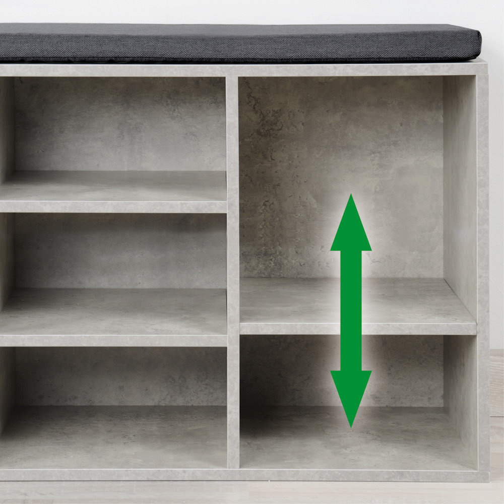 ▶ Voorzien van verstelbare legplanken. Tevens heeft dit model een zitkussen, zodat je hier comfortabel op kan zitten als je je schoenen aantrekt.