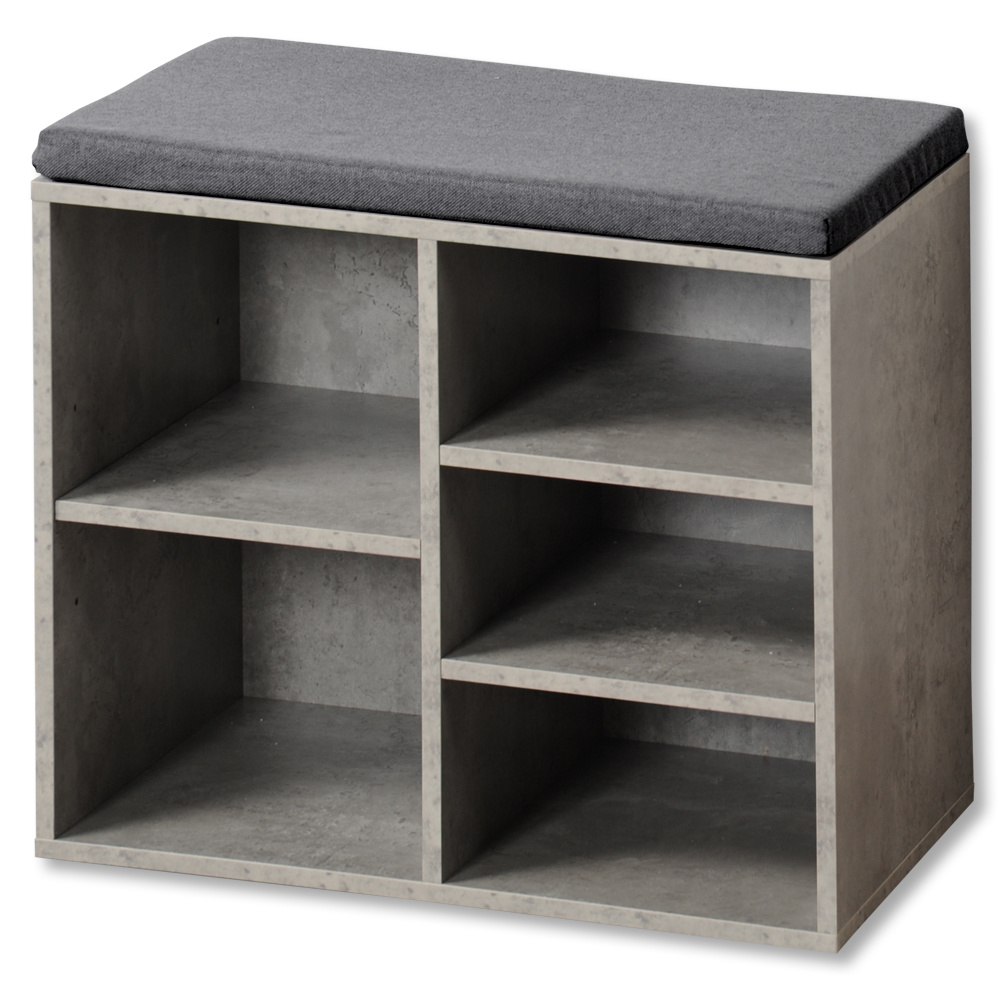 Kesper Schoenenbank - 5 paar schoenen met Zitkussen & Opbergvakken - Open Schoenenkast - FSC® hout - Afm 51.5 x 29.5 x 48 Cm - Grijs
