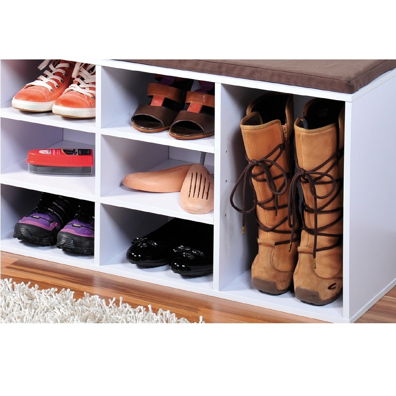 In de gang snel je schoenen aan of uittrekken wordt dankzij de veelzijdige schoenenbank met zitkussen een plezier. In plaats van staand te kwellen, kan je op de comfortabele zitting van stof plaats nemen. Voorzien van verschillende opbergvakken en om schoenen, laarzen en pantoffels in deze zitbank op te bergen. Schoenenbank voorzien van zitkussen in detail • Afmeting H x B x D: ca. 48 x 29,5 x 103,5 cm Materiaal: Stof, spaanplaat Bamboe • Gewicht: ca. 7 kg Schoenenrek om op te zitten • Voor de gang, woonkamer of slaapkamer • Prachtige look past bij elke woonstijl • Verschillende opberg vakken voor schoenen • Comfortabele zitting met stof bekleed. Leveringsomvang • 1 x schoenenbank met zitkussen in onderdelen • Met montagemateriaal • Met handleiding • Decoratie is bij de levering niet inbegrepen.