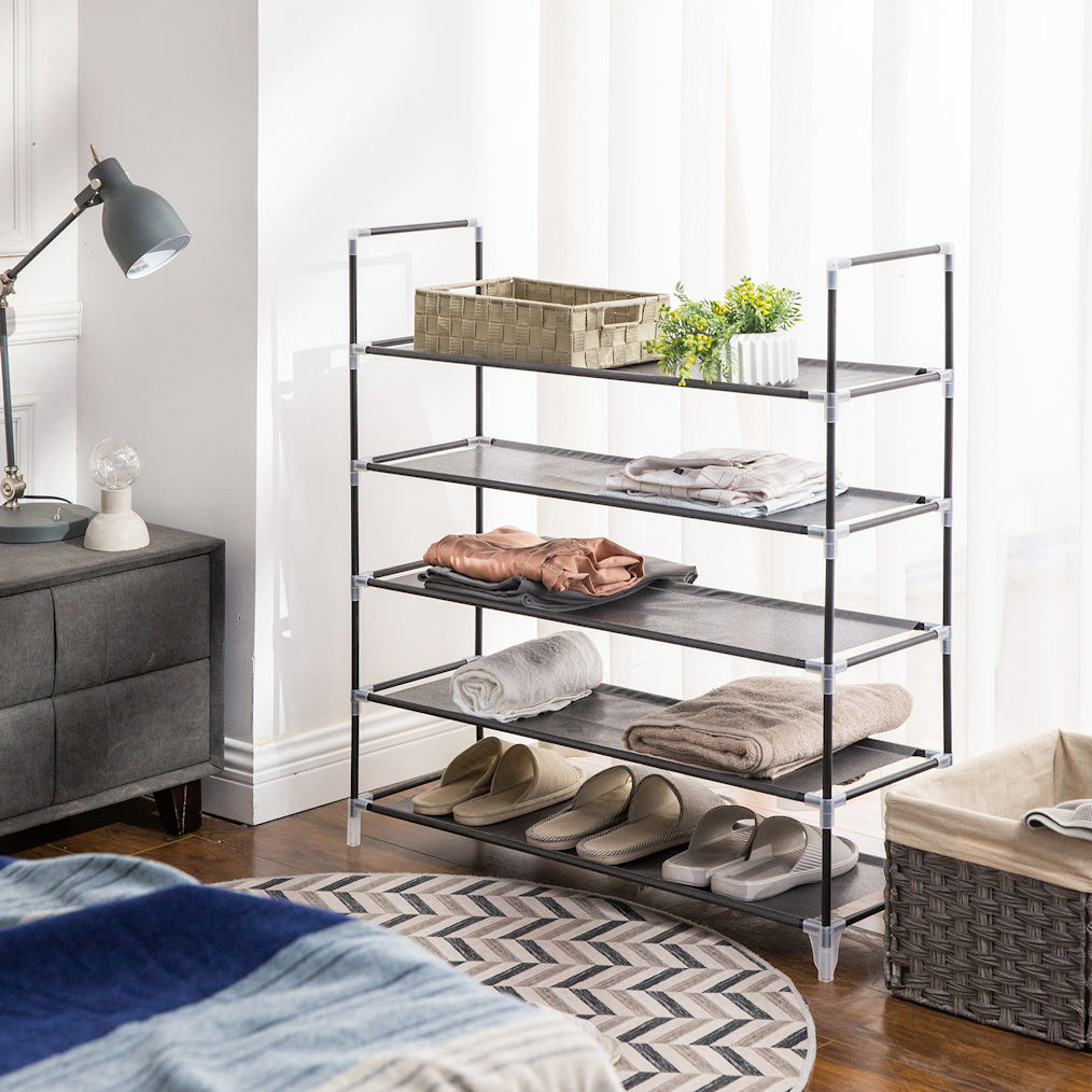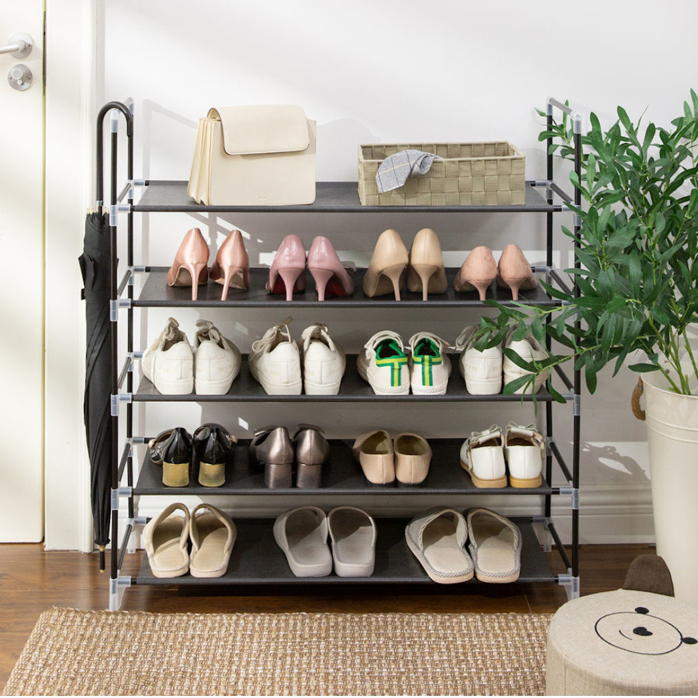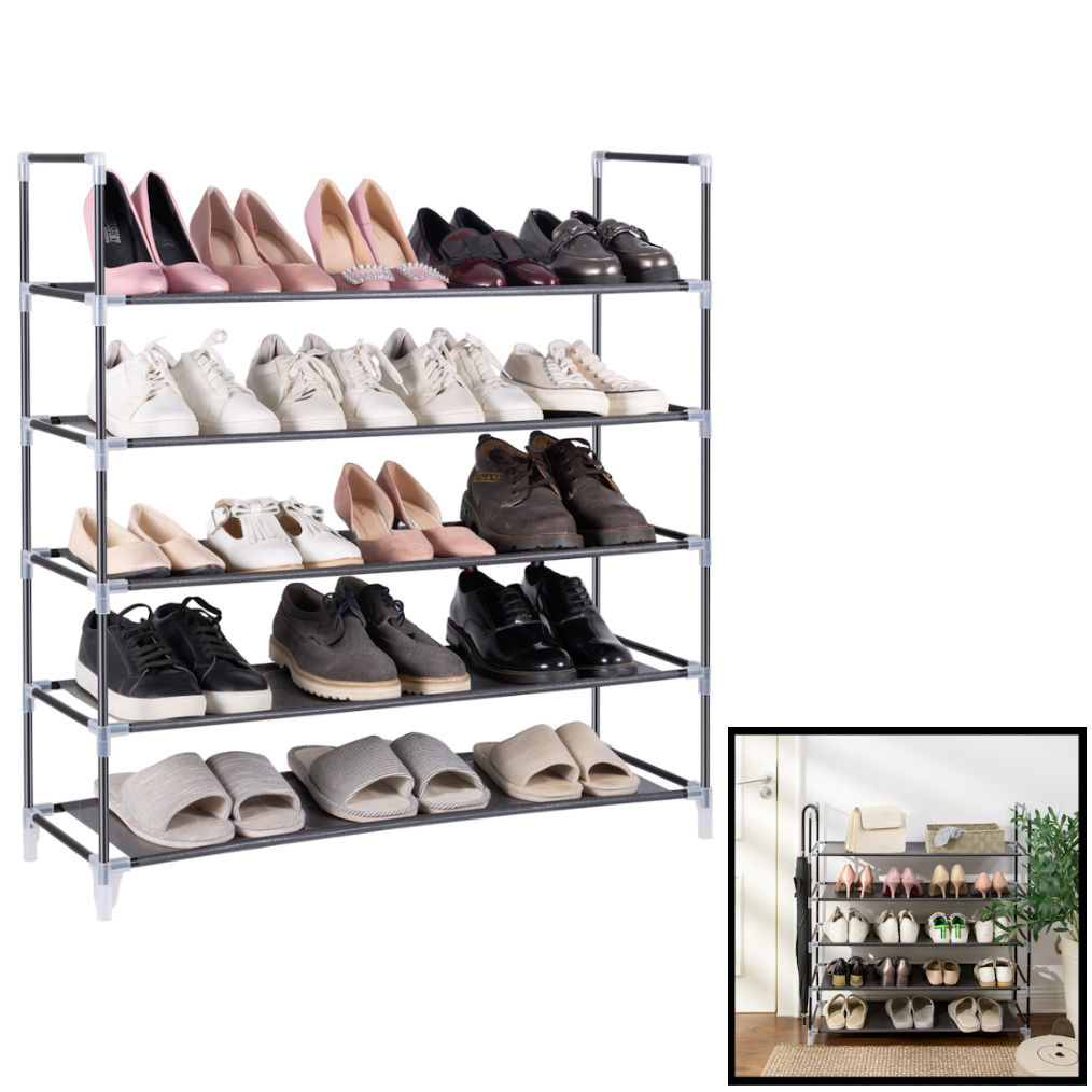 Het schoenenrek is 91 cm hoog en heeft maar liefst 5 etages. Op elke etage is plaats voor 4 tot 5 paar schoenen. Hoeveel paar schoenen je op een etage kwijt kan is afhankelijk van de grootte van de schoenen. In totaal biedt dit grote schoenenrek dus plaats aan tussen de 20 en 25 paar schoenen!