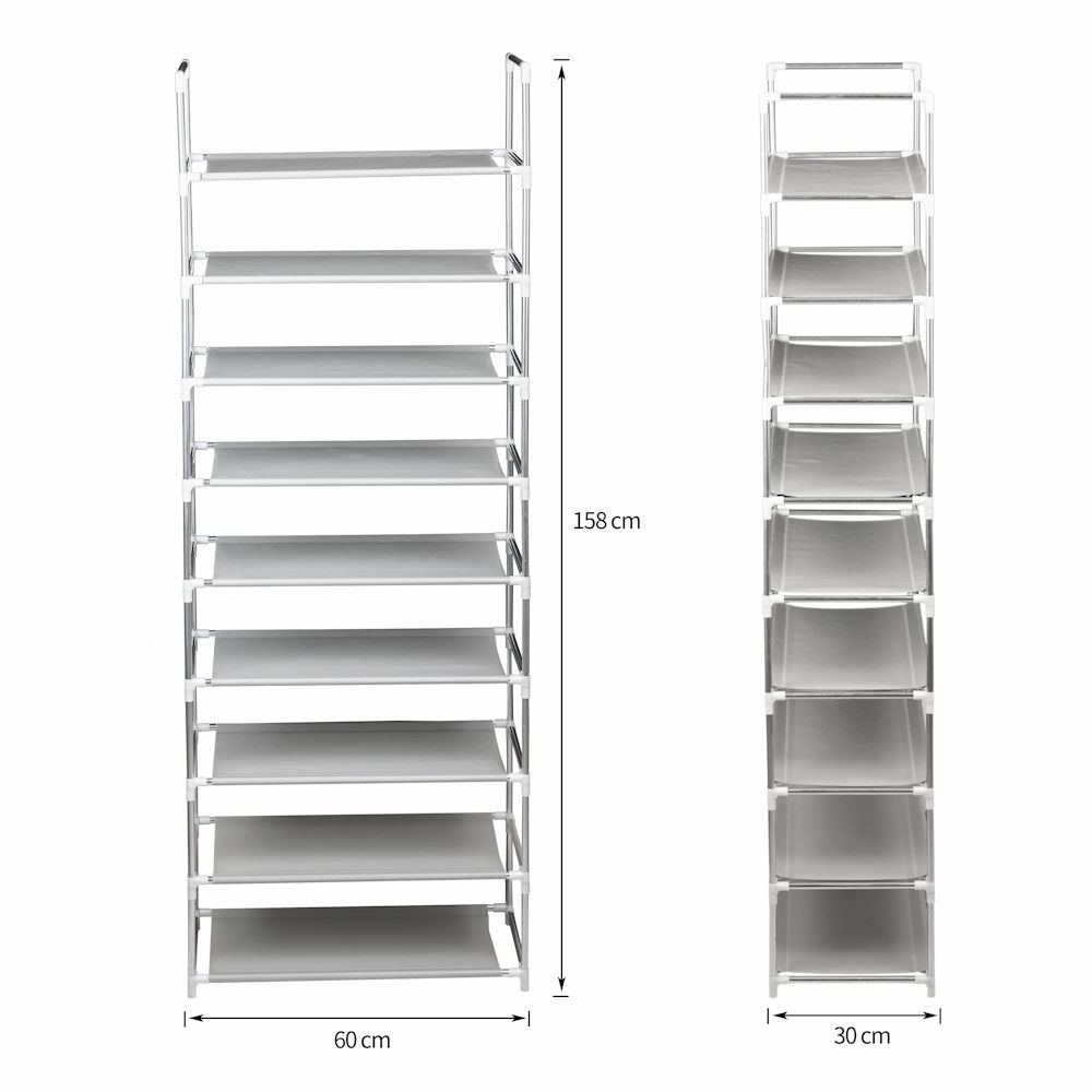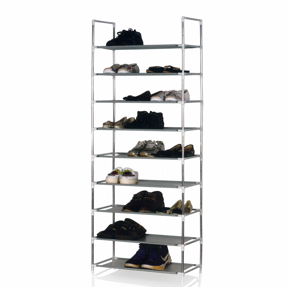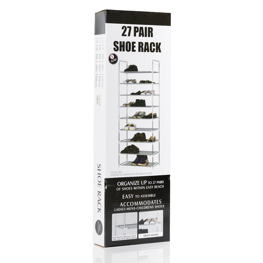 Het schoenenrek is 158 cm hoog en heeft maar liefst 9 etages. Op elke etage is plaats voor 2 tot 3 paar schoenen. Hoeveel paar schoenen je op een etage kwijt kan is afhankelijk van de grootte van de schoenen. In totaal biedt dit grote schoenenrek dus plaats aan voor 27 paar schoenen!