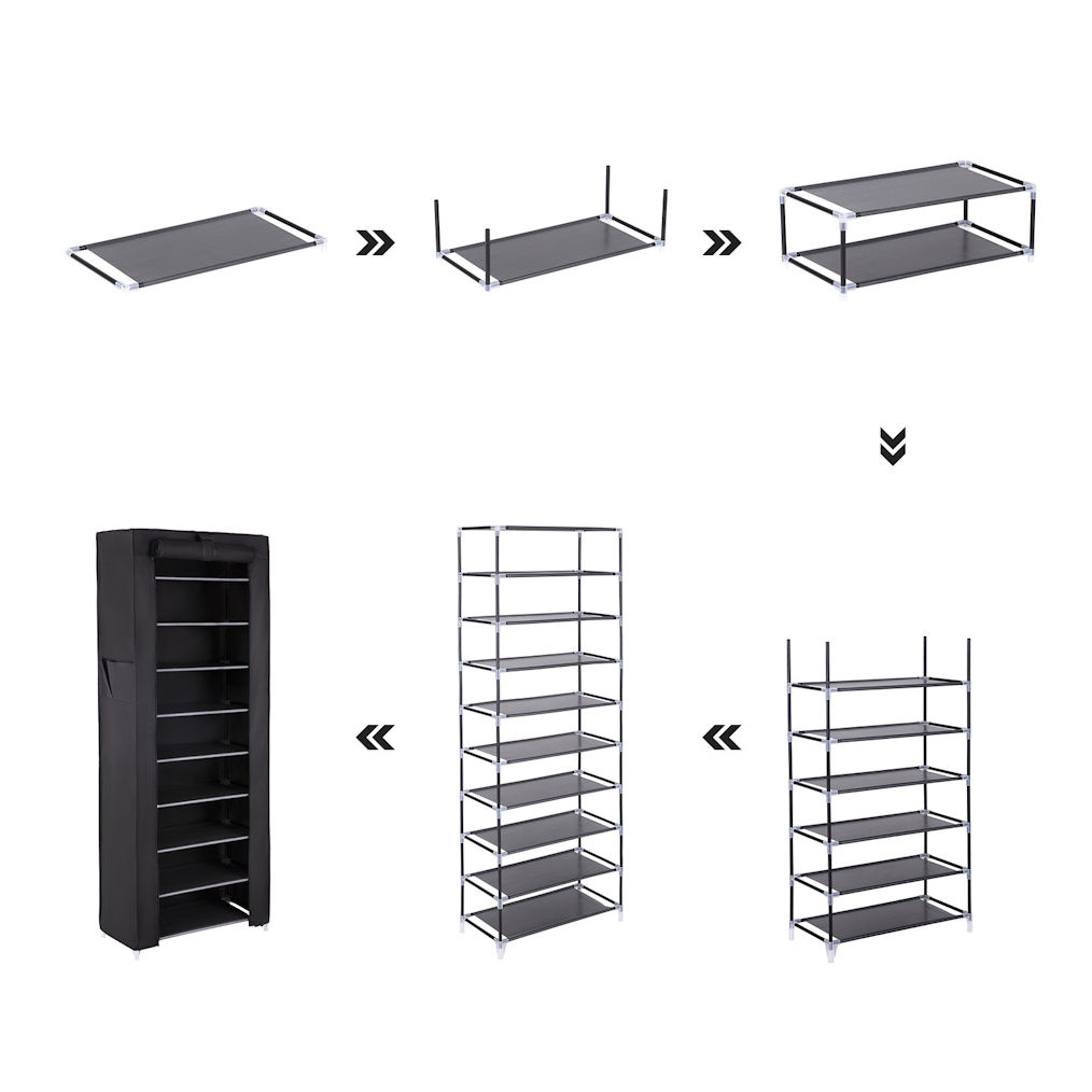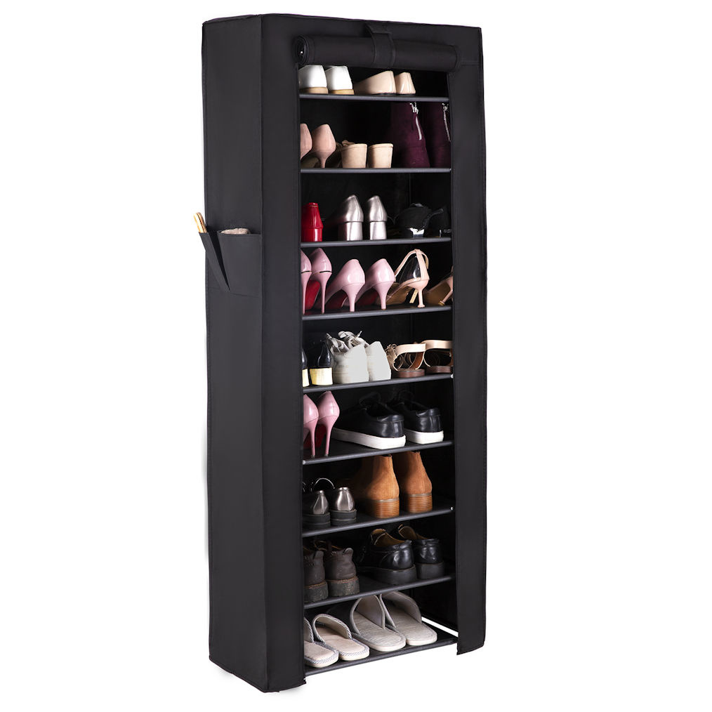 Decopatent Schoenenrek XL voor 27 paar schoenen - Met hoes - Opbergsysteem van metaal met kunststof verbindingen & hoes - Organizer voor schoenen opbergen - Staand opbergrek – Schoenenkast zwart - Decopatent®