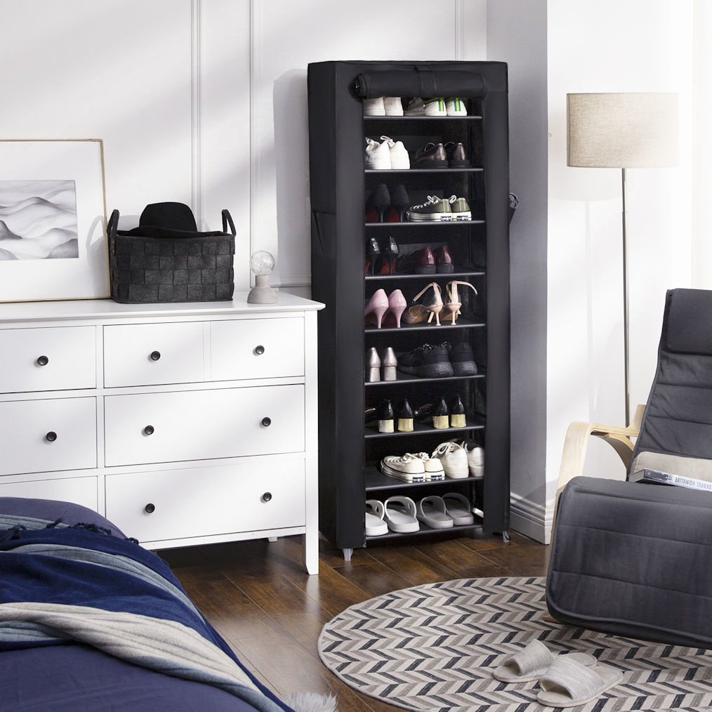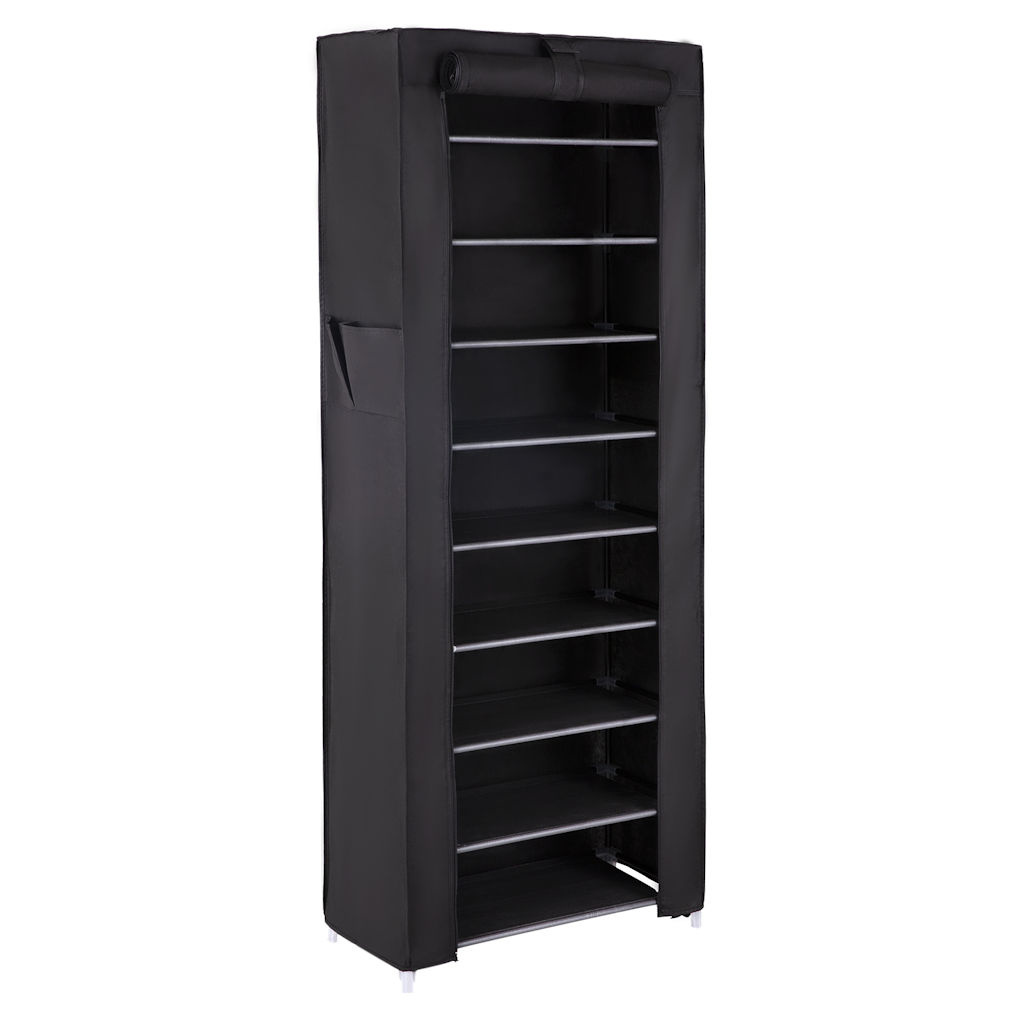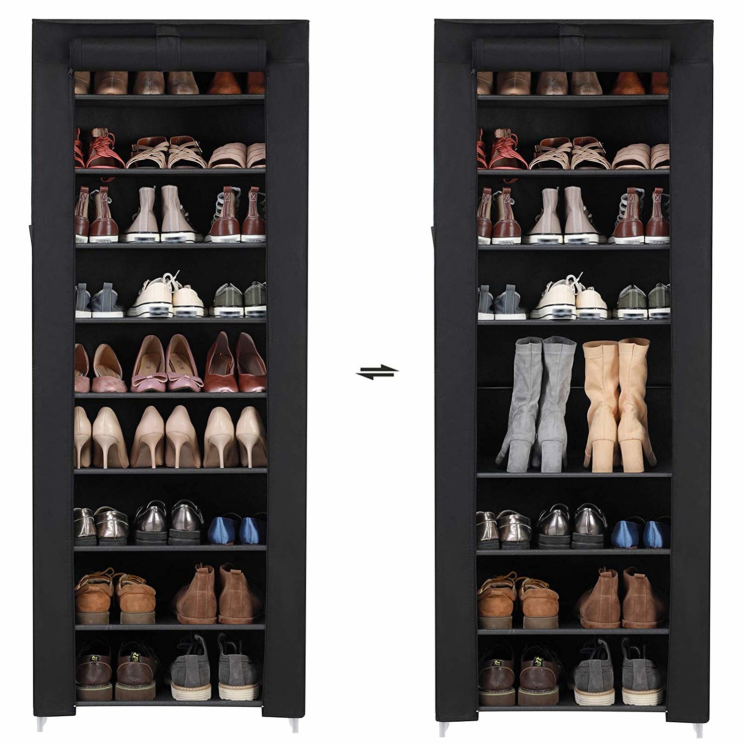 Dit schoenenrek biedt je veel ruimte door zijn lengte en hoogte. Hij is niet zo breed waardoor hij niet in de weg staat. De hoogte bedraagt 160 cm en hij heeft 9 etages. Op elke etage kan je 3 paar schoenen kwijt. In totaal biedt dit grote schoenenrek dus ruimte aan 27 paar schoenen. Hij wordt standaard geleverd met hoes waardoor je schoenen netjes en stofvrij blijven!