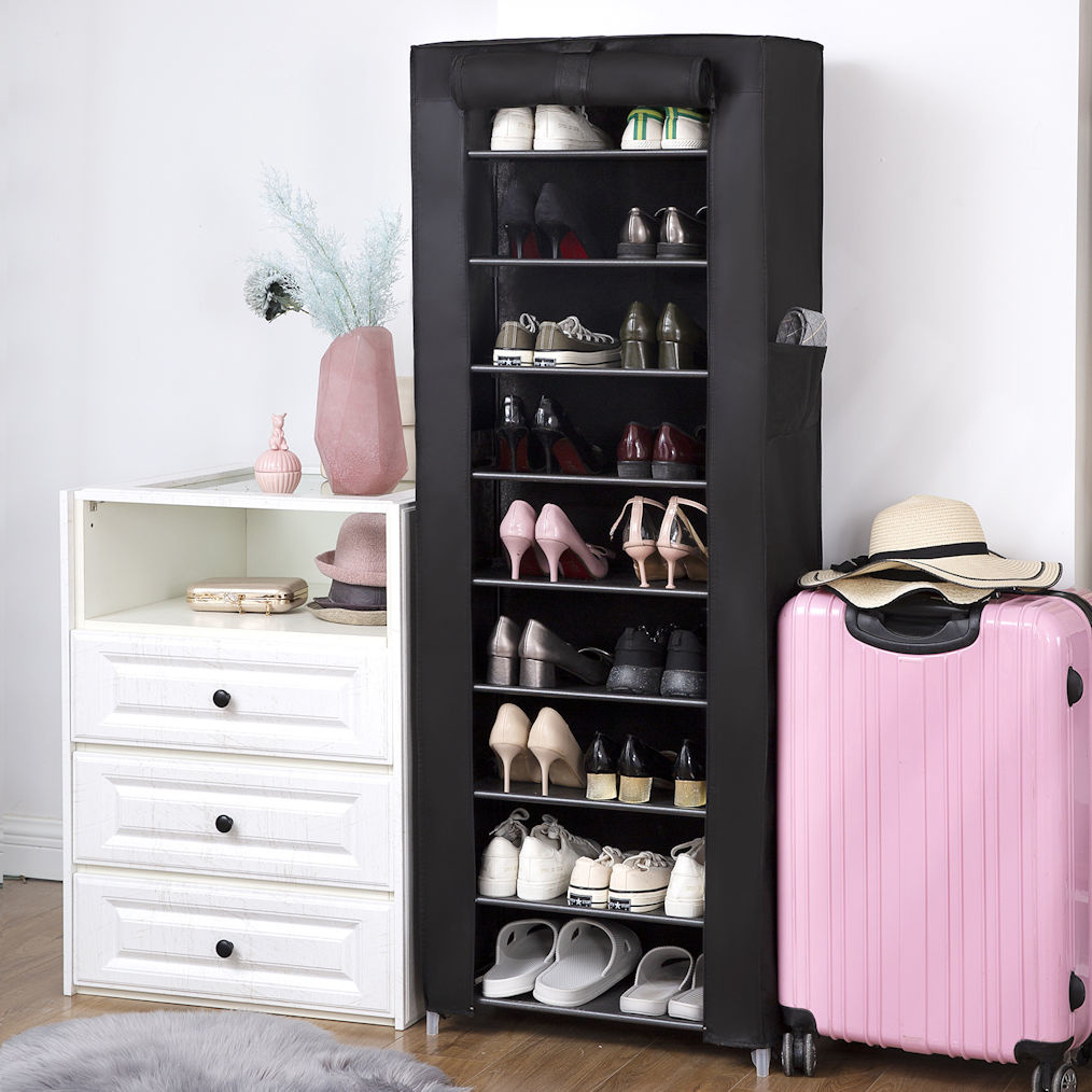 Bij een open schoenenrek komt er altijd stof op je schoenen. Daar heb je bij dit Decopatent schoenenrek geen last van! Er wordt namelijk een stevige zwarte hoes meegeleverd. Deze past perfect om het rek heen en beschermt je schoenen tegen stof. Zo blijven je schoenen langer mooi!