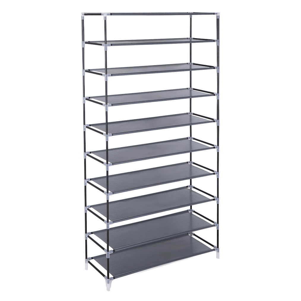 Het schoenenrek is 160 cm hoog en heeft in totaal 9 etages. Ook bovenop het rek kan je nog schoenen plaatsen. Op elke etage is plaats voor 3 tot 4 paar schoenen. Hoeveel je er kwijt kan is afhankelijk van de grootte van de schoenen. In totaal biedt de kast dus plaats aan tussen de 27 en 40 paar schoenen.