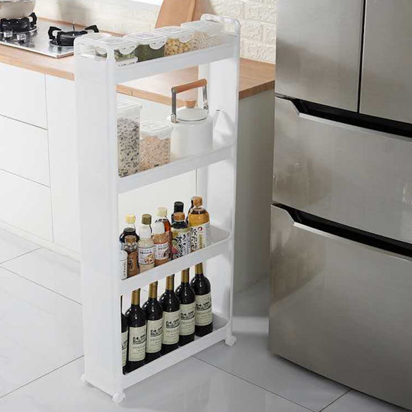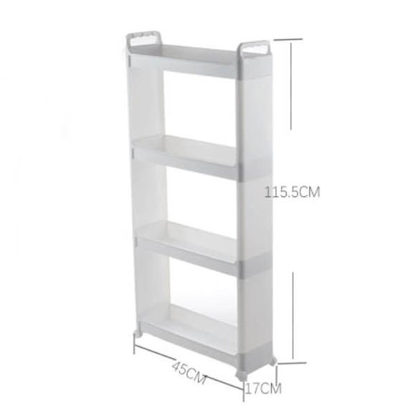 Dit mooie smalle opbergrek met 4 legplanken gemaakt van hoogwaardig kunststof is zeer geschikt, om de kleinste hoekjes te vullen en om snel extra opslagruimte te creëren. Dit nisrek kan bijvoorbeeld in de keuken, badkamer, woonkamer, eetkamer, berging gebruikt worden.