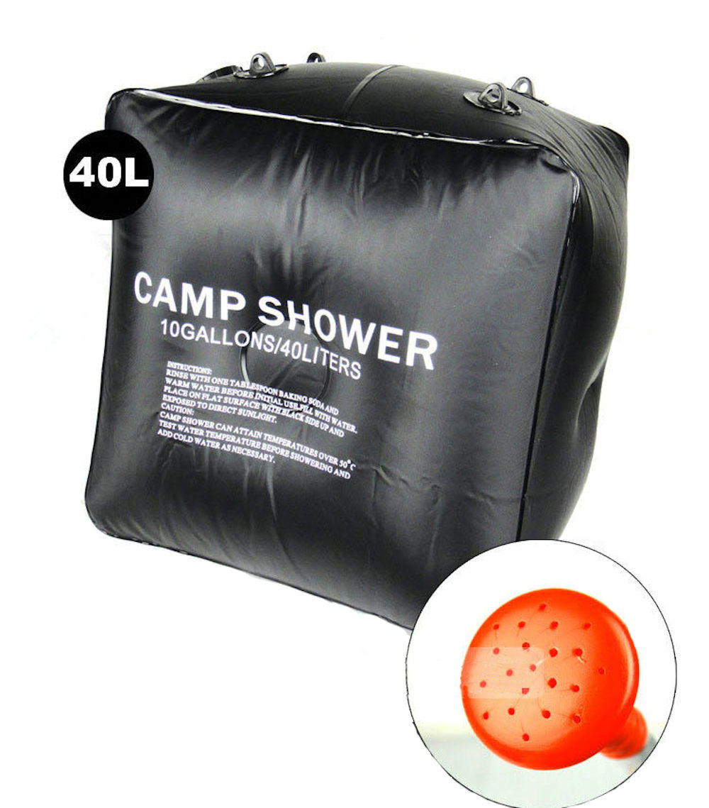 Deze camping / tuin douchezak van 40 liter is erg handig voor tijdens het kamperen of om mee te nemen naar een festival camping. Vooral op festivals is het vaak moeilijk om even snel te kunnen douchen. Deze douche zak is erg gemakkelijk mee te nemen in jouw koffer of reistas. Vul deze camping douchezak met 40 liter water en hang deze eenvoudig op aan een boom, paal of de hoek van je tent. Als de zon schijnt is het water na enkel uren lekker warm en kun je een heerlijke douche nemen. De campingdouche heeft een douche slang en wordt geleverd met een ophangkoord.