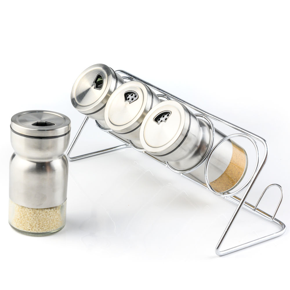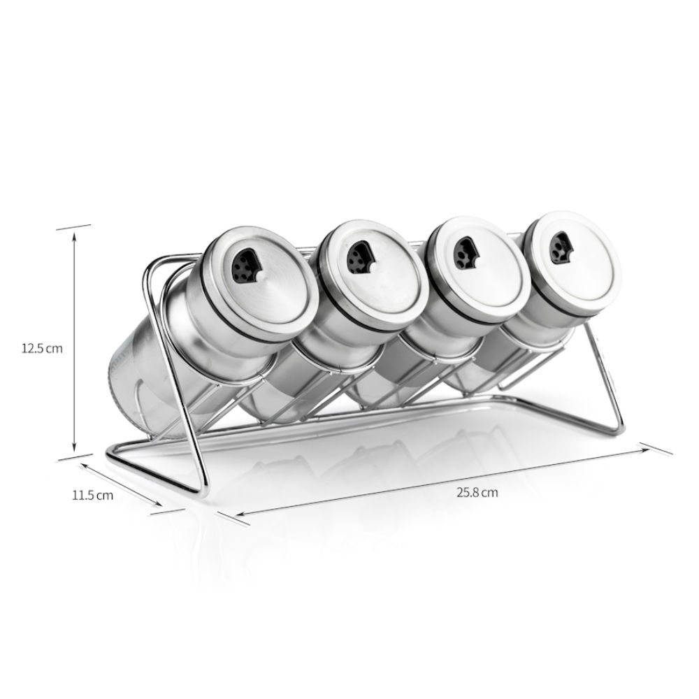 Dit rvs Kruidenrek met 4 potjes heeft een tijdloze uitstraling, en past daarom in elke keuken. Deze luxe keukenaccessoire mag u eigenlijk niet missen in uw keuken.