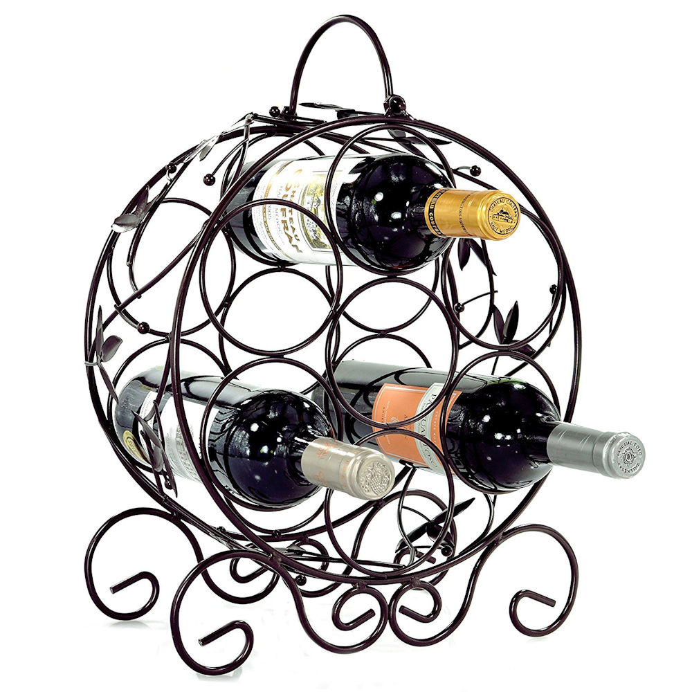 Decopatent Staand Rond Wijnrek van Metaal met Wijn Bladeren - Flessenrek voor 7 wijnflessen - Stapelbaar Wijnrek voor wijn flessen - Wijnrekje - Metalen Wijnrekken - Afm. 31.5 x 15.5 x 35.5 Cm - Decopatent®