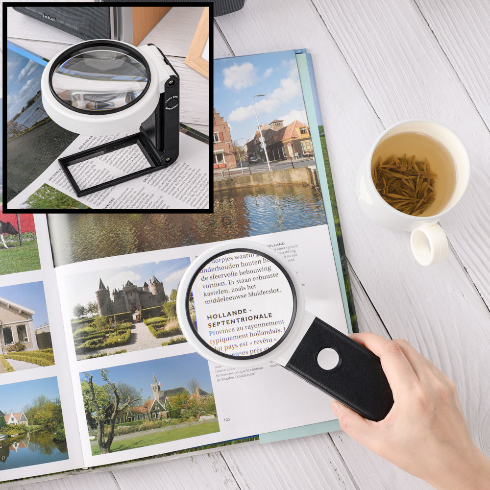 Met de 2 ingebouwde lenzen kunt je alles nu weer duidelijk lezen. Ook is dit vergrootglas ideaal bij het bekijken van Postzegel- of muntenverzamelingen, het lezen van kaarten, horloge reparaties, computerreparaties of bij het controleren van sieraden.