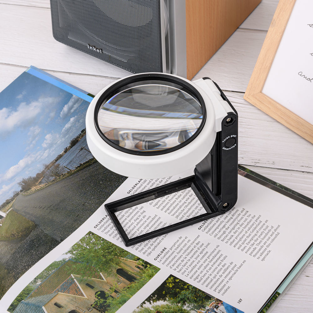 Dit vergrootglas is voorzien van verlichting. En heeft 6x ingebouwde LED lampen. Zodat u alles altijd perfect kunt zien.