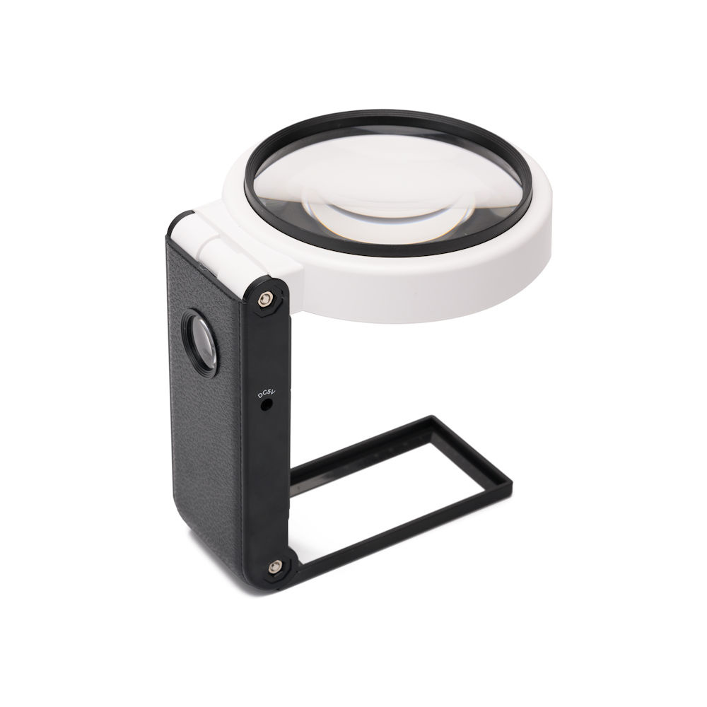 Door middel van het lichtgewicht ontwerp houd je de handloep gemakkelijk vast in je hand, of klap je hem in om hem boven op het object te zetten dat je wilt vergroten.