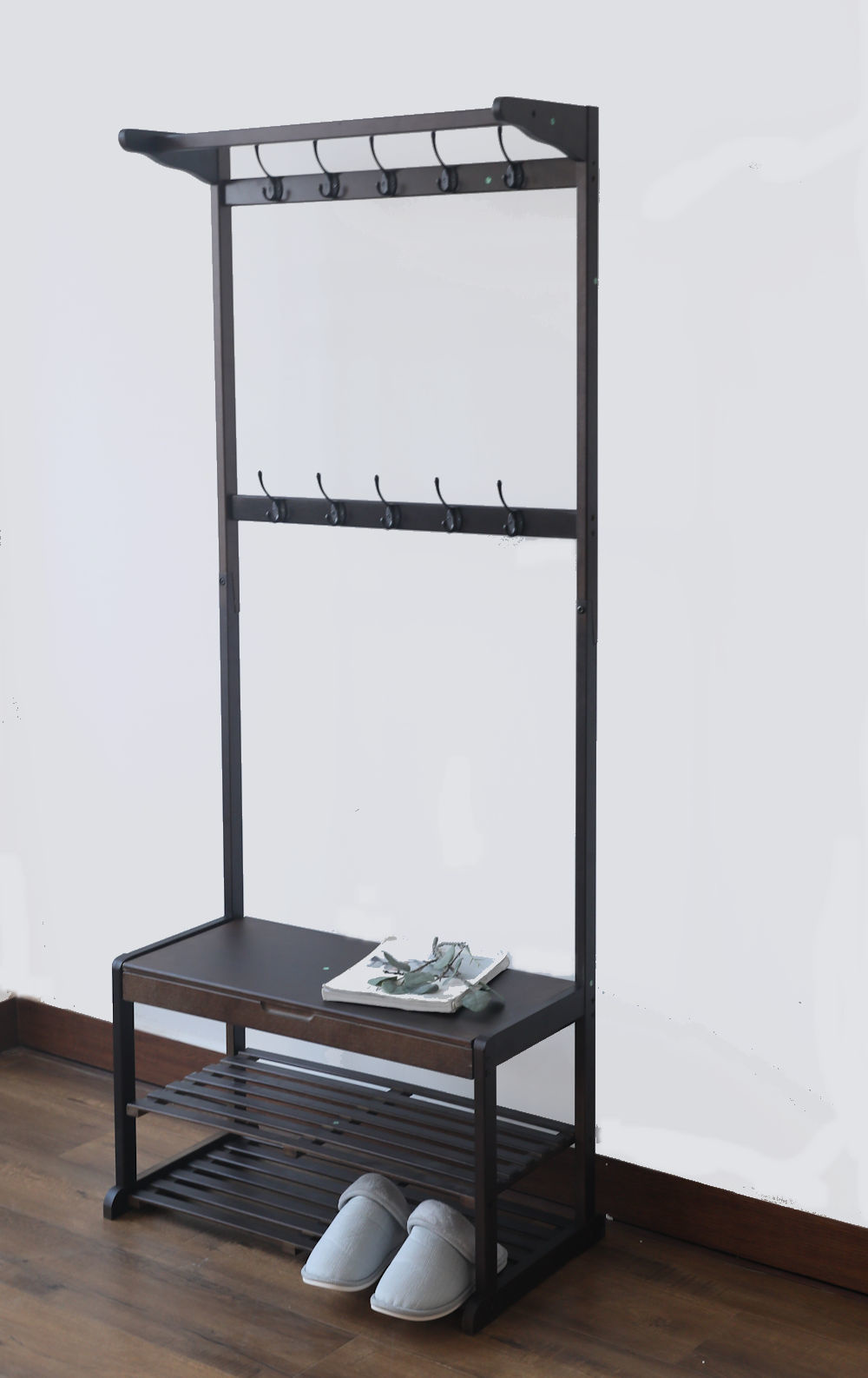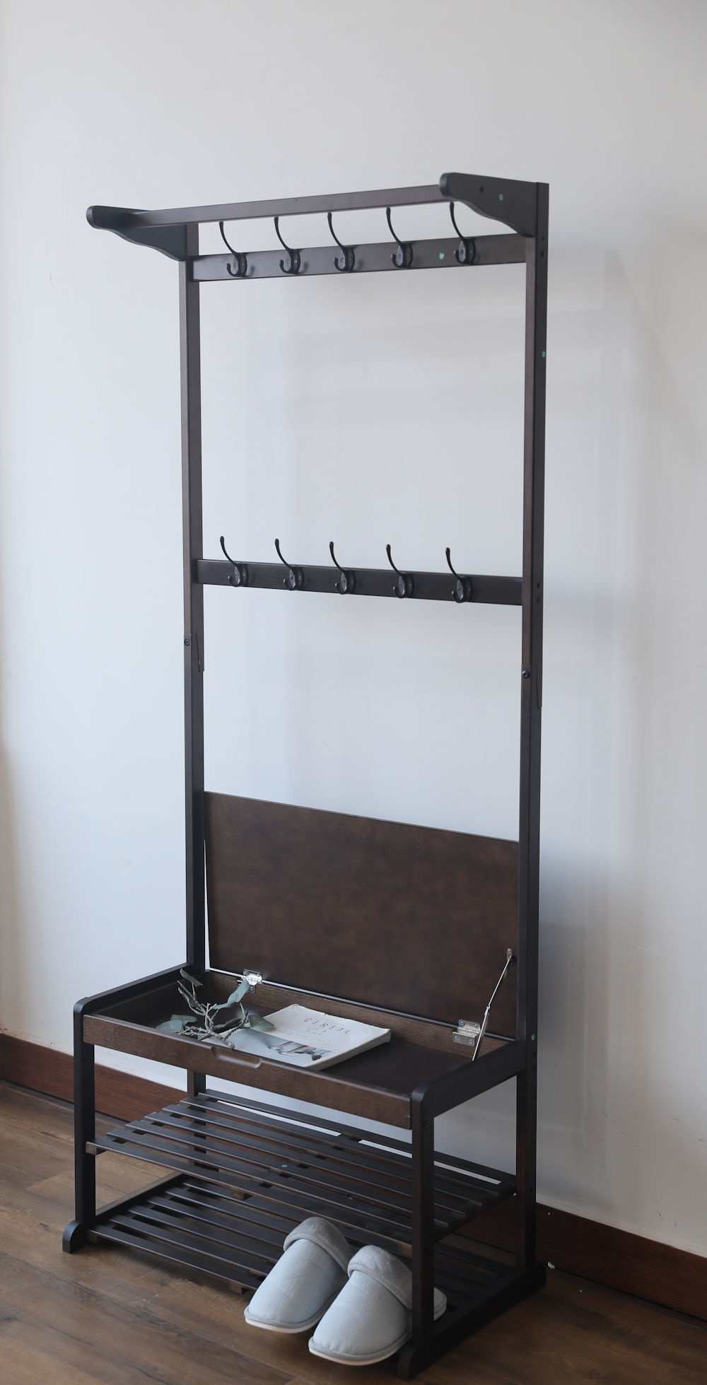 Stevig staand bamboe garderoberek. Voorzien van kapstok, opberglade met klep & 2 legplanken voor schoenen. Hoge kwaliteit en makkelijk in elkaar te klikken!